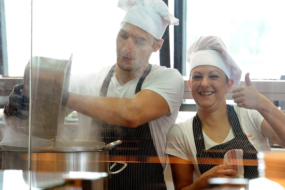 Dobro su usklađeni, nema odmora jer u kuhinji uvijek ima posla. Ivo radi, cijedi paštu i daje upute. Skoro je 11 sati i sve mora biti spremno za marendu - porcije na broju. U kuhinji atmosfera radna, u cijelom prostoru glazba opuštajuća, ugodni indie i nema mirisa užeglog ulja menze ili velikih restorana. Kako ne bi došlo do zabune ili se ne bi skuhalo previše ili premalo hrane, porcije se naručuju dan prijem putem, logično za zaključit kad je Infobip u pitanju, aplikacije. Dakle, prisloni se kartica na elektronički uređaj koji očita ono što je naručeno sa tjednog menija i iznos se skida sa plaće.