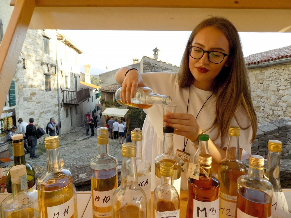 - Domaću rakiju nekoć su držali po konobama, nisu znali što bi s njom. Sada ima široku primjenu, u raznim varijantama, a pogotovo biska koja je bila osnovni pokretač humske smotre. Bisku u Humu proizvodimo po receptu plovana koji ju je spremao kao ljekoviti pripravak za liječenje određenih bolesti, od komovice s dodatkom lišća imele. To se dan, danas drži kao originalni humski proizvod. Župnik je vjerojatno dodavao još neke trave, a mi smo preuzeli slogan da je domaća rakija naša medižija jer je to stvarno medižija. Nekada se koristila ako ništa drugo kao analgetik protiv bolova, ali i kao antiseptik, rekao je humski župan "na leto dan" Elvino Prodan.
