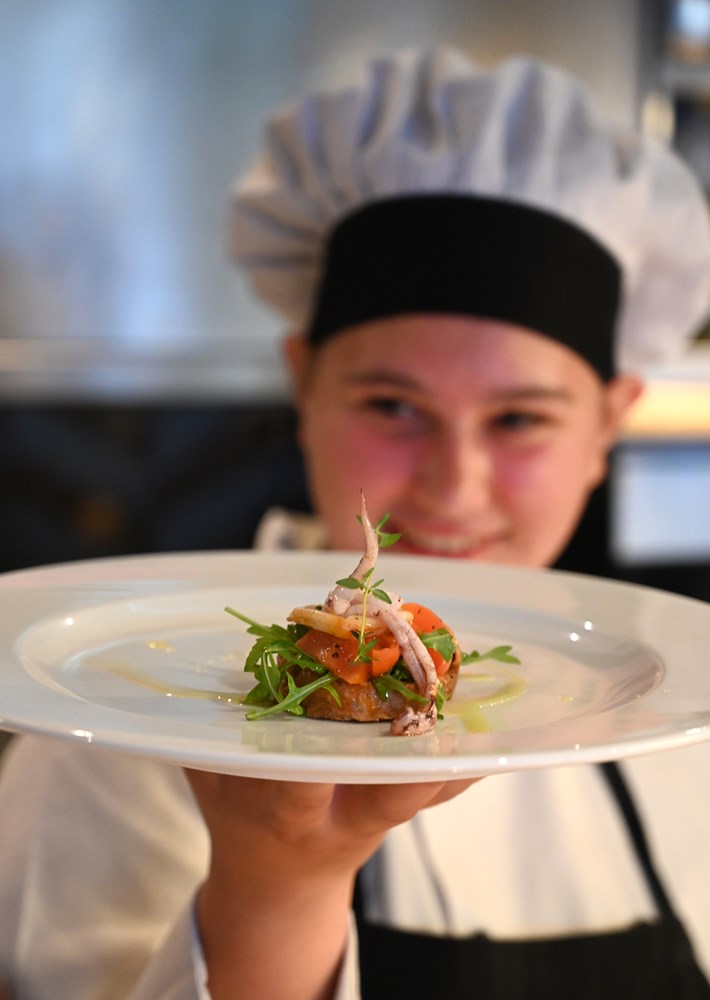 Roberta Steblaj Maksimović, učenica 2. razreda u programu za kuhare, kaže da se za ovo zanimanje odlučila isključivo jer osjeća povezanost s kuhanjem i svime što ima veze s time. "U školi dobijemo osnovno znanje, a ostalo stječemo iskustvom, kroz praksu, pa i rad", kaže ona. Iz ovakvih susreta sa chefovima, smatra Roberta, može se dosta naučiti, pogotovo iz primjera koji će im pomoći da prepoznaju pravilnu termičku obradu namirnice, ali najviše ovisi o tome koliko oni sami pokažu interesa. Nakon što, priča nam, položi IV. stupanj, sebe i u budućnosti vidi u struci. "Volim sve što je povezano s kuhinjom!", zaključuje s osmijehom Roberta.