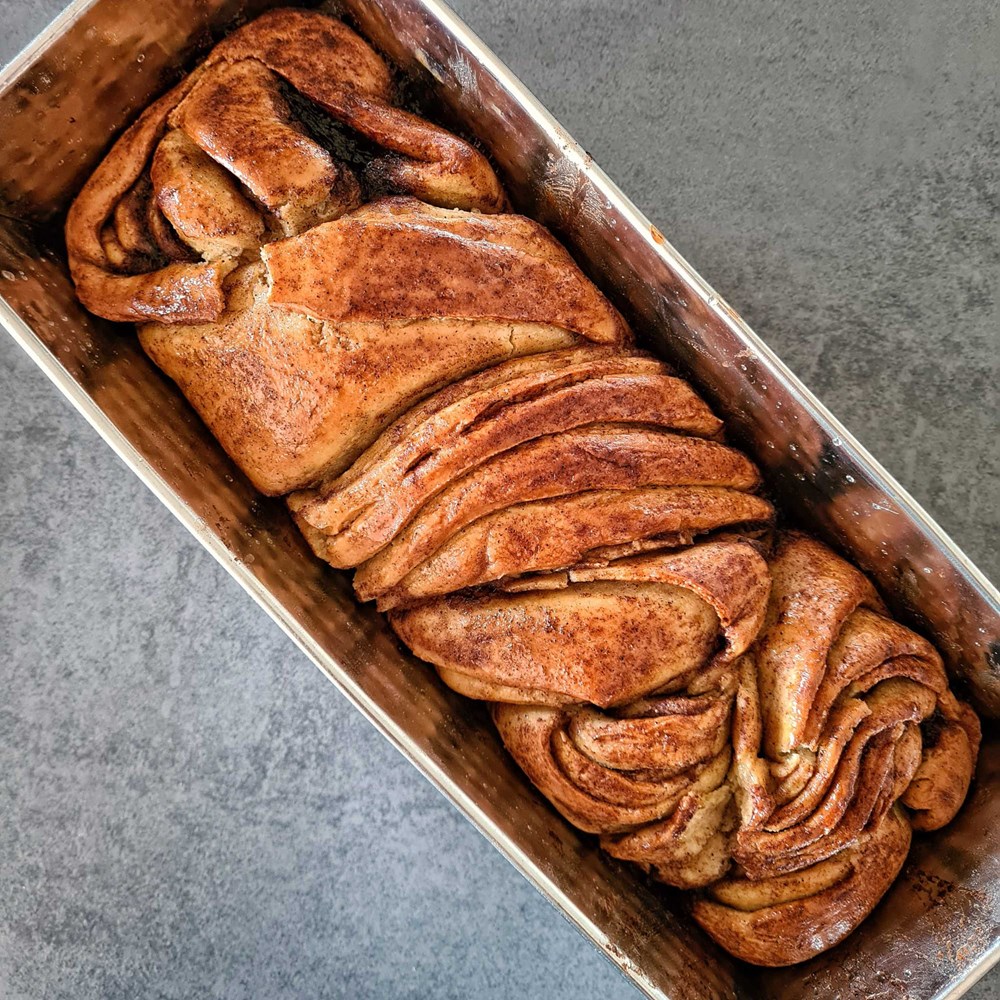 Zarolajte tijesto i prepolovite ga po dužini. Te dvije polovice zarolajte na način da dobijete pletenicu. Stavite pletenicu (babku) u manji protvan na papir za pečenje. Prekrijte ju krpom i ostavite da se diže još minimalno pola sata.