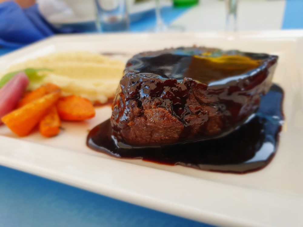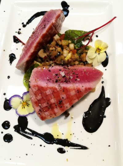 1. Marinirani lungić u umaku od cabarnet sauvignon-a, pandišpanj od šumskih gljiva, coulie od ovčjeg sira