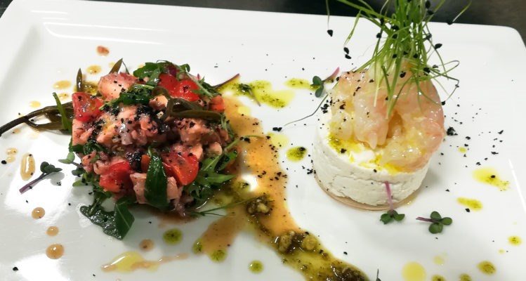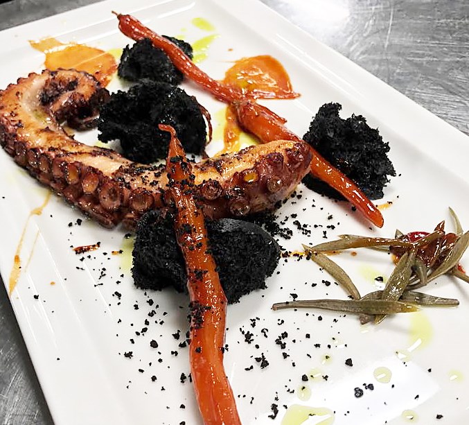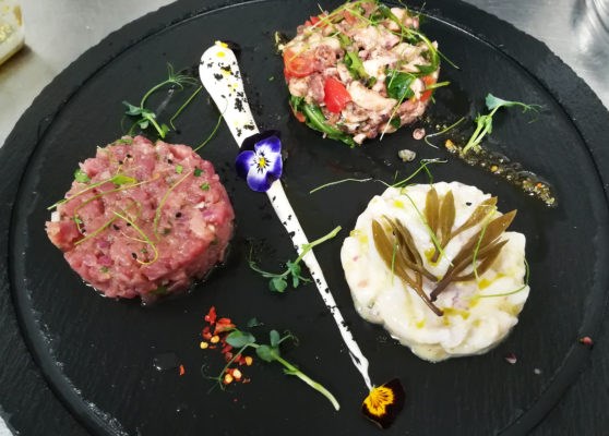 2. Terina od skuše, divlje orade i hobotnice, košuljica od blitve i maslina, gel češnjak, toast
