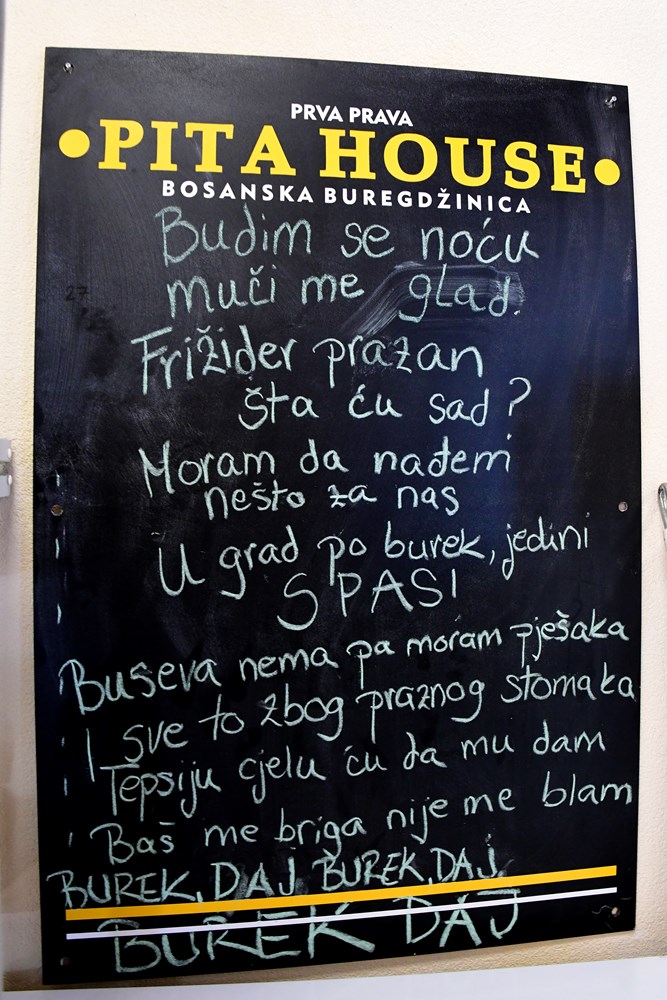 Pitarnica je mala, velika tek nekoliko metara kvadratnih. Tek što je Šejla zamijesila tijesto tanje od lista papira, razgovor s Tonijem, sa sirnicom u jednoj i tikvenjačom u drugoj ruci, nastavljamo u obližnjem kafiću. Šejla, naglašava on, nije nikada radila u pekari. Ona pravi pitu, ističe još jednom, a to je i najbitnije, onako kako ju pravi doma. I zato ovdje, napominje, nema govora o ikakvoj usporedbi s pekarama.
