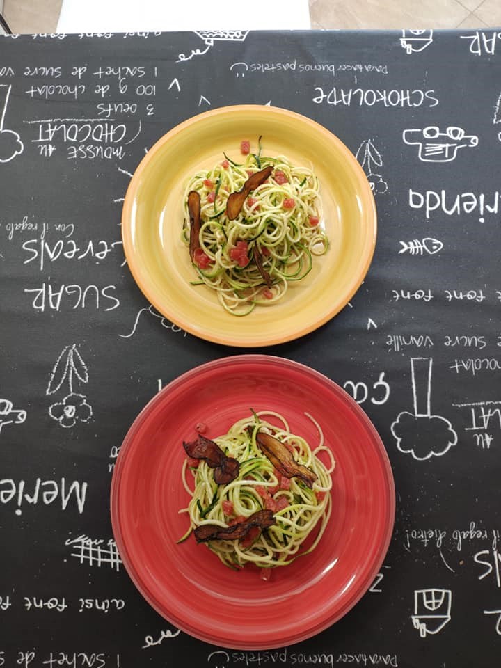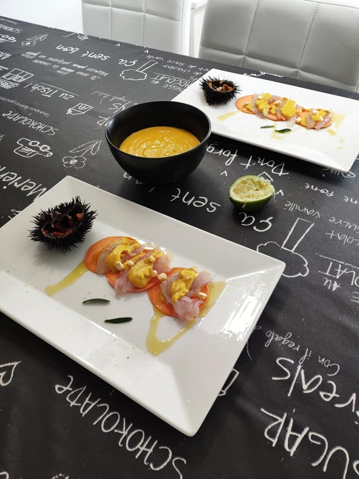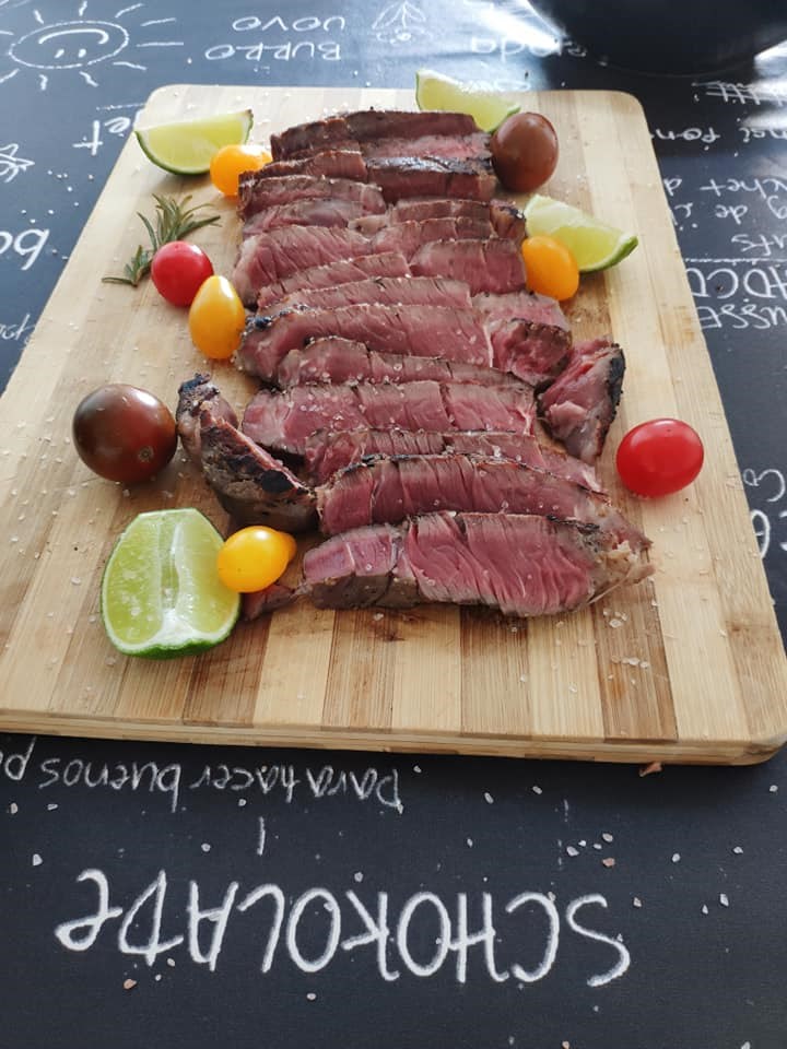 Pišem mu poruku: "Stavljam te u novine s ovom klopom". Nakon kratkog nećkanja, ipak pristaje i dogovaramo ručak. Na meniju ravioli od heljde, šampinjoni punjeni špinatom, salsa od badema i dehidrirana lubenica. Uslijedio je Istrijanski curry- medium raw steak, s kremom od kokosa, đumbira i kurkume, a točka na "I" aromatizirani buro. Prefino. Pridružuje nam se Morisov sin Sergej i partnerica Silvija. Oni su mu najveći kritičari. Mislim si, blago njima. Svaki dan jedu kao u restoranu.