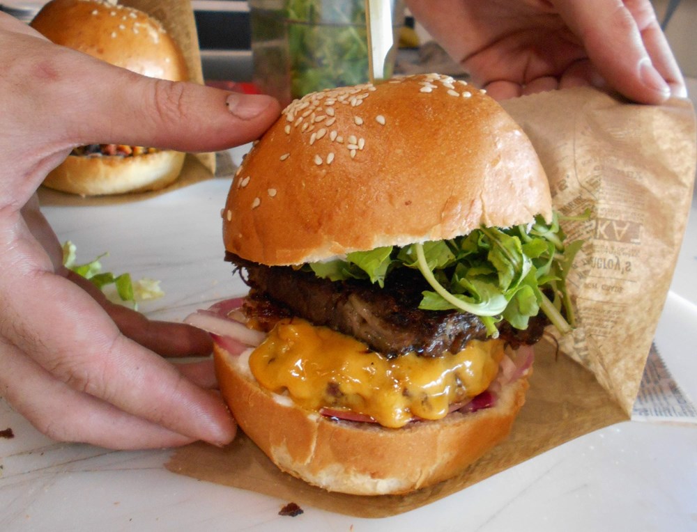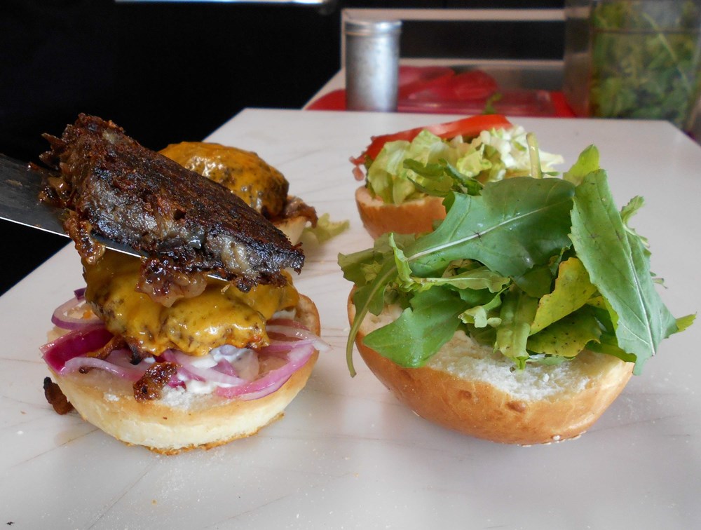 - Uz takav način pripreme meso postaje toliko mekano da se raspada u ustima, tumači Luka Radoš. U pecivo se umeće jedna takva pljeskavice od goveđeg repa i još jedna klasična pljeskavica od junetine, a dodaci su umak od hrena i francuskog senfa, ukiseljeni slatko-kiseli luk, svježi cheddar sir i svježa rokulja. I to je to, burger od goveđeg repa s 230 grama pečenog mesa, odaje nam recept.