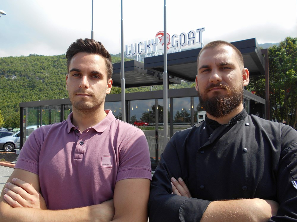 Zašto je koza sretna? Zato što nije završila u tanjuru! Ova pošalica ipak nije bila ideja vodilja Luki Radošu kada je sa svoja dva brata, Antoniom i Paolom, osmišljavao projekt ugostiteljskog objekta Lucky Goat, smješten na istarskoj strani Tunela Učka. Objekt bi najlakše bilo opisati malo složenijim terminom "street food grill bar".