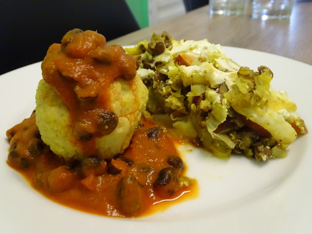 Batat je više vlažan u odnosu na krumpir pa je potrebno više brašna da bi se dobro umijesili, a onda ispadaju tvrđi. "Moji njoki od batata ne traže mnogo brašna, a umjesto jaja koristim nešto drugo što vam ovdje neću otkriti, a ispadaju mekani i fini. Jedan umak za njoke je vegetarijanski od crnog graha u gustom umaku, a drugi je zapravo šugo od piletine koje se sprema 20ak minuta i ne sadrži nikakve šalše ni pomidore, a ukus je fantastičan. Ovi se umaci mogu koristiti i s drugim prilozima poput riže, tjestenine ili s okruglicama od prosa koje smo isprobali na radionici. Gusti topli kremasti umaci vrlo dobro balansiraju suhoću i grubu teksturu neke hrane poput grahorica i leća, kao i hladan vjetar i suhoću koju on stvara u tijelu, a što je dosta vidljivo po suhoj koži.", objašnjava. Tu je i složenac od korijenastog povrća s mesom ili seitanom i tempehom u vege varijanti. Što se mesa tiče, smatra da bi ono trebalo biti dio obroka, a ne glavna stvar na tanjuru. Za kraj - zapečeni složenac ili musaka od leće i batata. Sočno, ukusno i toplo jelo naročito pogodno za one koji ne jedu namirnice životinjskog podrijetla.