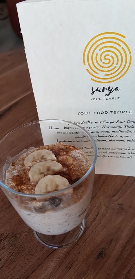 Namaste, pozdrav je koji ćete vjerojatno čuti pri ulasku u Suryja Food Temple. Baš kao i zvuk gonga za uvod u novi dan i zamjenu hitoidnih radijskih pjesmuljaka koji vrište iz barova. A onda kreće pravi ritual u kojem sva čula uživaju - sirovi veganski cheescake sa svježom mentom u kombinaciji s neobičnim i aromatičnim masala čajem. Za energiju s kojom se može izgurati cijeli dan tu je jedan u nizu super smoothija s dodacima super hrane - spirulina, acai bobica i svih mogućih iznimno hranjivih bobica koji se stavljaju u hladno prešane sokove od voća i povrća.