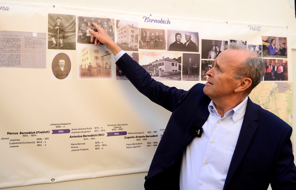 Uz dugačku vremensku lentu s priloženim fotografijama i dokumentima, supružnici Peter i Loredana Poletti i njihov sin Matteo uzvanicima su predstavili vinsku priču od svojih predaka do danas - šest generacija na istome mjestu, s nasljednicima pod tri prezimena, Dellemarna, Bernobich i Poletti.