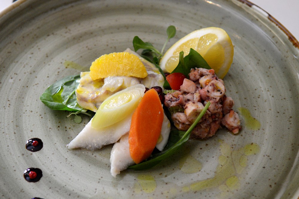 - Za predjelo smo gostima predstavili naš umanjeni dio hladnog ribljeg pijata koji se sastoji od salate od hobotnice, brancina mariniranog u citrusima i medu u konfiji sa začinskim biljem i povrćem. U drugom je slijedu predstavljen specijalitet kuće, rižoto Rossella pripremljen sa Rossella vinom, jagodama i škampima, a na koji se dodaje dehidrirani pršut. Treći je slijed činio brancin na žaru u umaku od kapara i malvazije, punjena pohana srdela te lignje u tempuri, uz prilog kelja i krumpira na dalmatinski način. Za desert je gostima poslužena naša poznata bumbarka - torta od badema, skute i meda, pojašnjava chefica kuhinje.