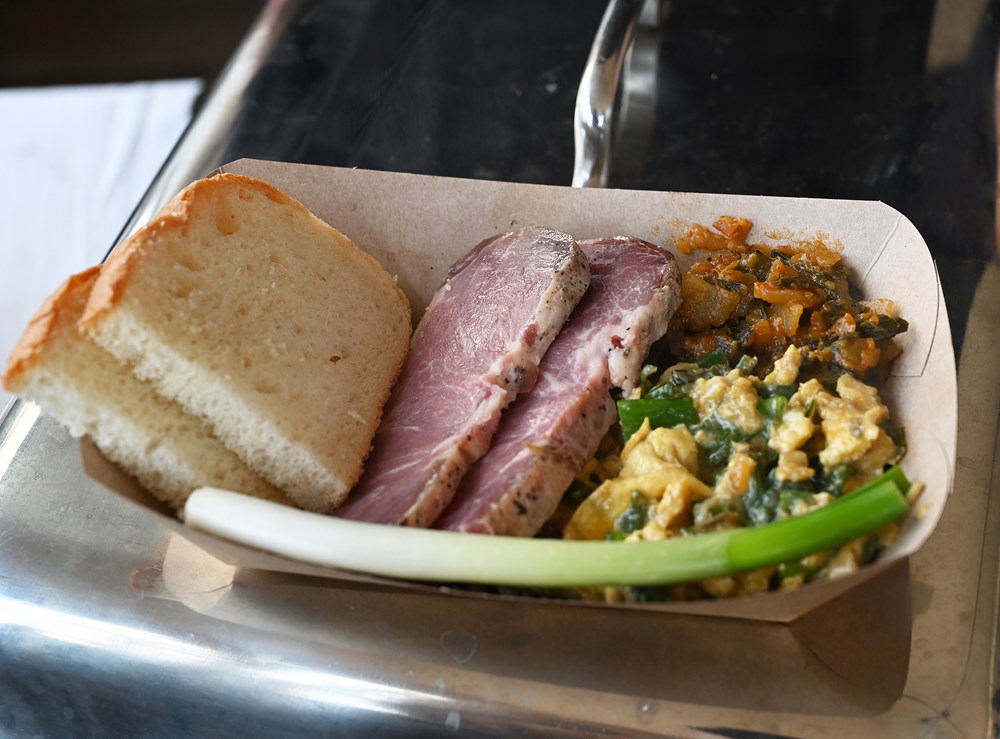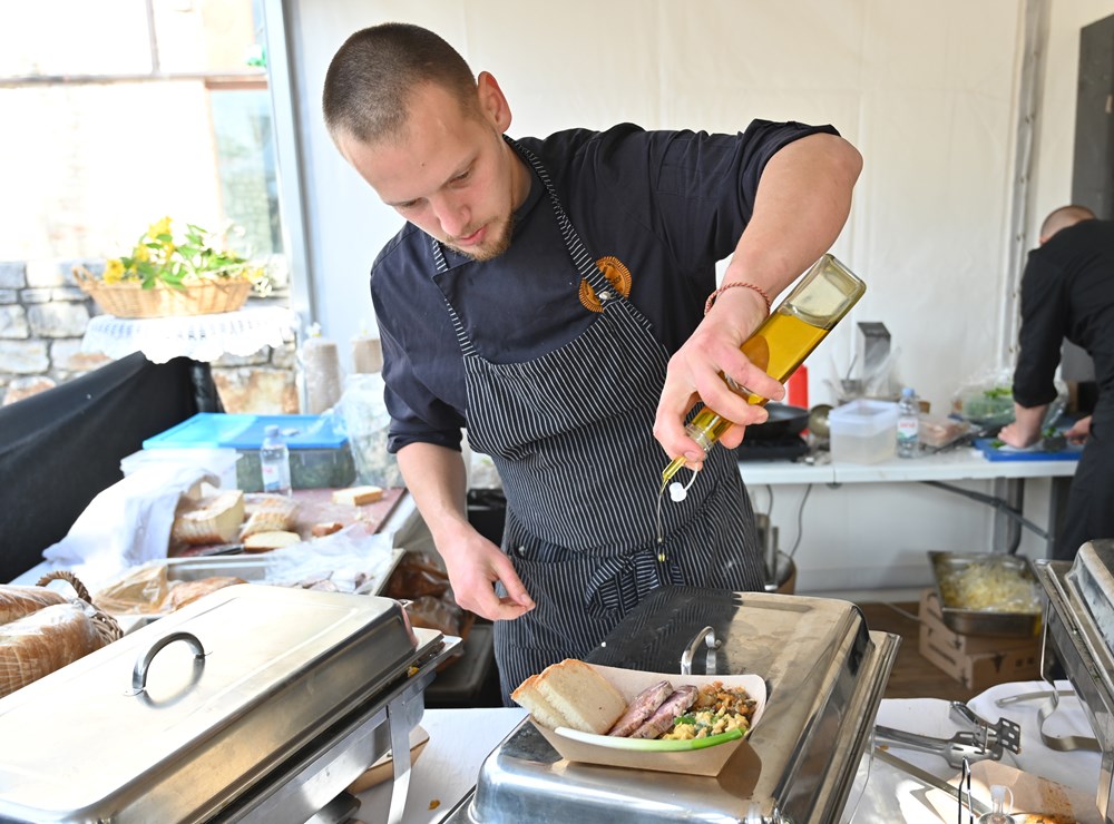 Za deset eura kulinarska ekipa pulskog hotela Amfiteatar nudila je špaletu (nešto pretvrdu moramo kazati!) s prilozima: fritaja s mladim lukom, te restani krumpir s mladim lukom. Za istih deset eura mogli su se probati pljukanci sa špaletom i mladim lukom, onda 10 dekagrama istarskog pršuta, a za istih deset eura i mješavina istarskog sira. Na jelovniku se isto tako našla maneštra za samo 2 eura!