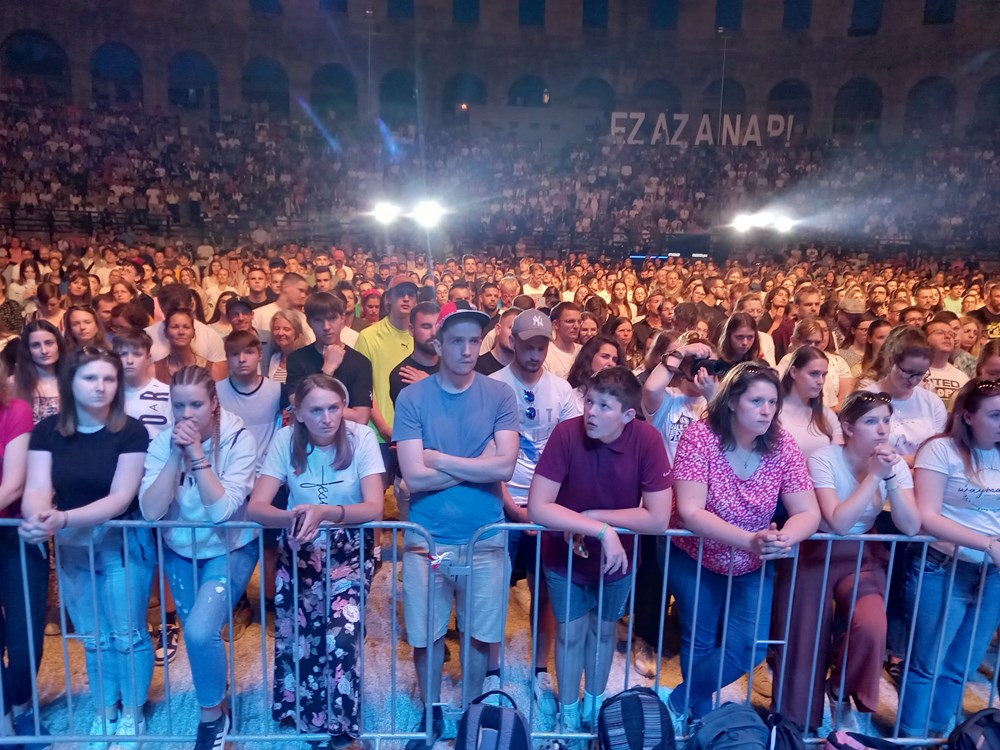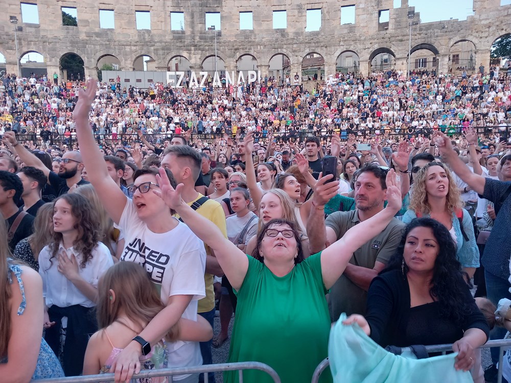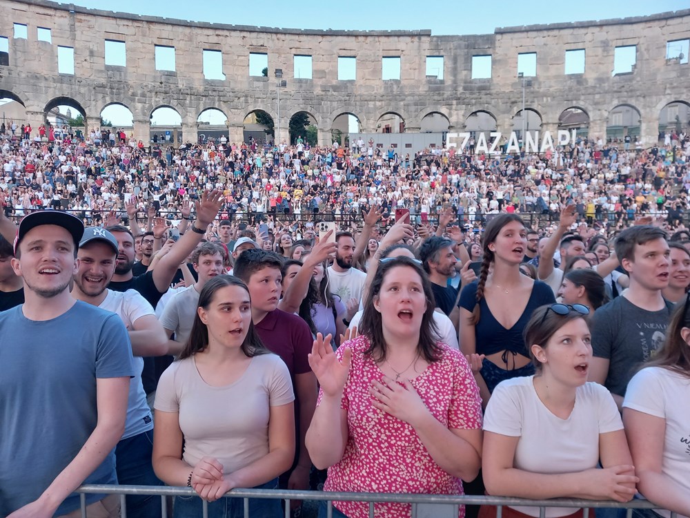Atmosfera u Areni bila je doista posebna. Publika se prepustila porukama pjesama, osjetila se pozitiva. Prije nastupa Hillsong United tisućama u amfiteatru obratio se otac Rikardo iz Pule i luteranski pastor iz Mađarske koji je danas navršio 90 godina. Zahvalili su se na zajedništvu svih vjernika bez obzira kojoj crkvi pripadali.