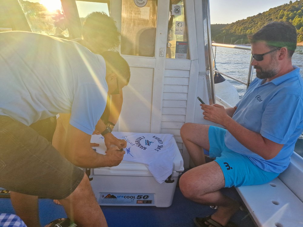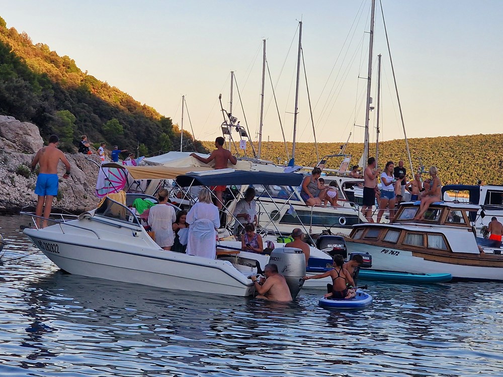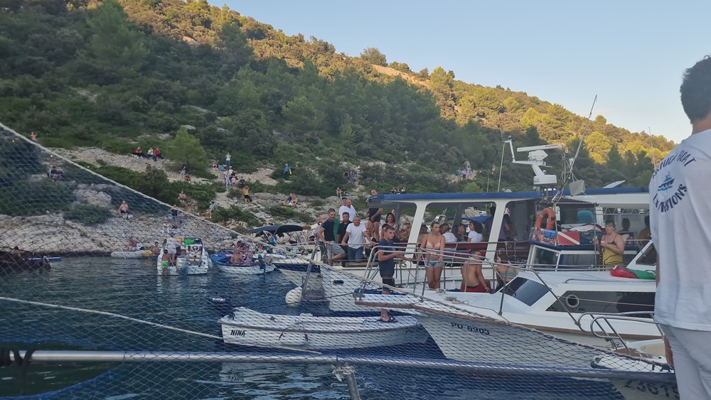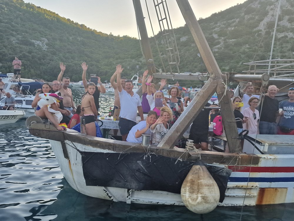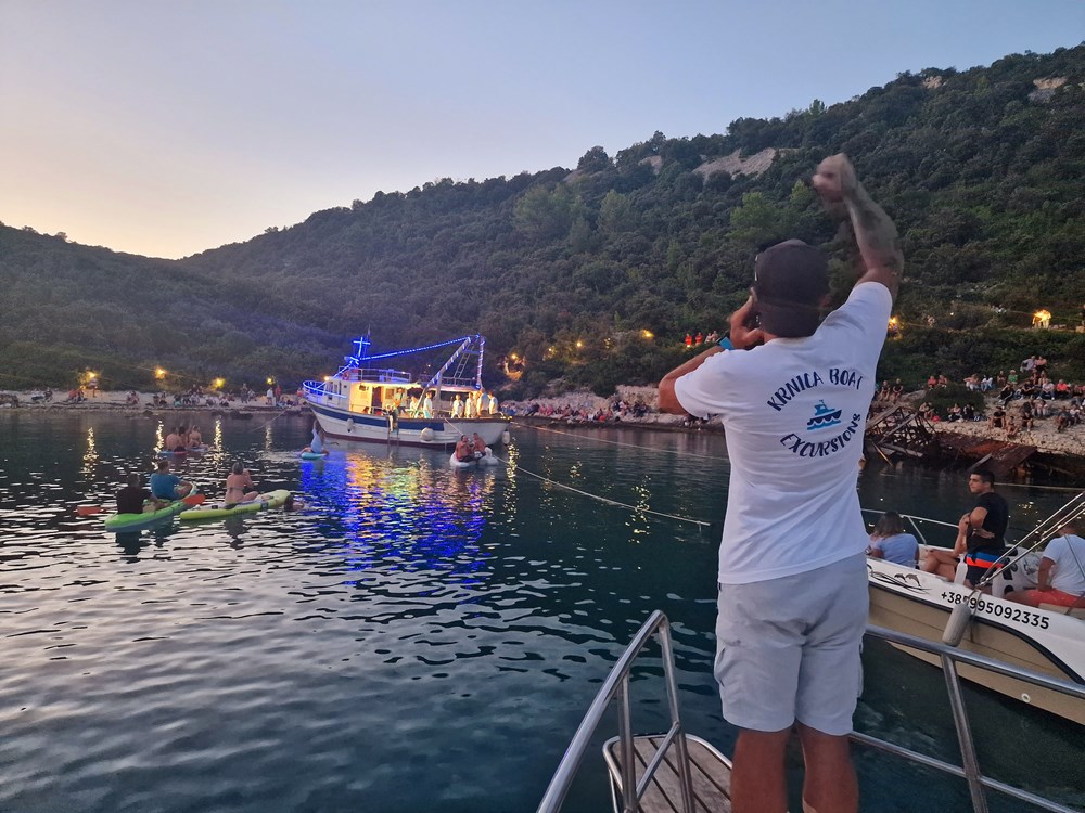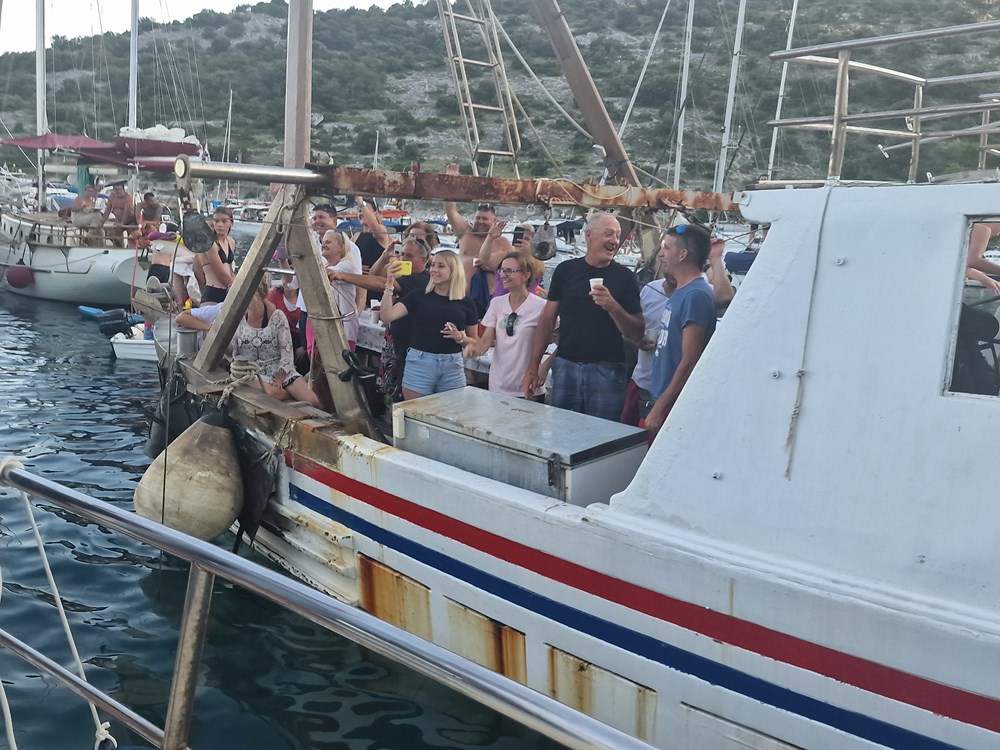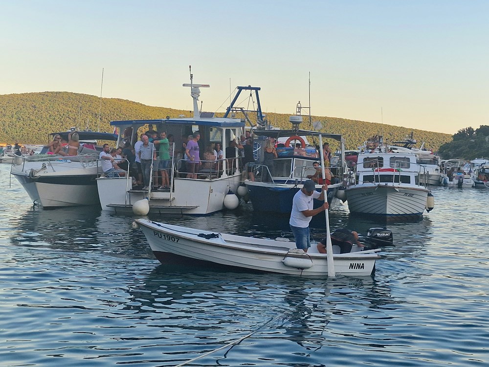 Publika se pak okupila na brodicama, supovima, luftićima, na plaži, obalnim puteljcima i stijenama te glasnim aplauzima dočekala klapu Rišpet, a klapa im je uzvratila vrsnom interpretacijom dobro znanih melodija kao što su "Kad je pošla ća", "Reći ćeš mi fala", "Šta mi ljube oćeš kazat", "Prsti zapleteni", "Mislim samo na te", "Sunce mi od tebe dolazi", "Projdi mojon kalon", "Kada ljubav dvije duše spoji", "Lipo mi je tu"…