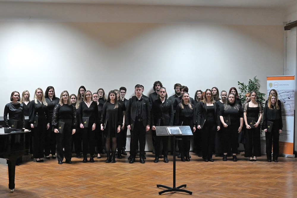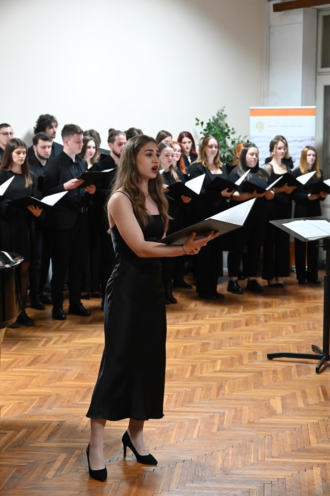 Zbor Muzičke akademije imao je na repertoaru djela Mozarta, Francka, ali i profesora Okmace koji tamo predaje, potom Kaplana, Papandopula, neizostavnog Ronjgova, Uhlika i Starca.