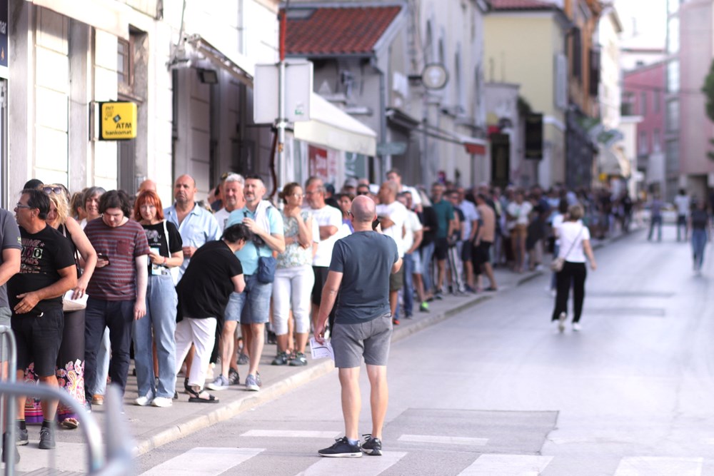 Kako možemo vidjeti, u redovima ispred Arene ima onih 40, 50 plus i starijih, ali i mladih, kao i čitavih obitelji. Dok se čeka početak, prodavači sladoleda i pekarskih proizvoda zasigurno trljaju ruke - dobar posao za sve.