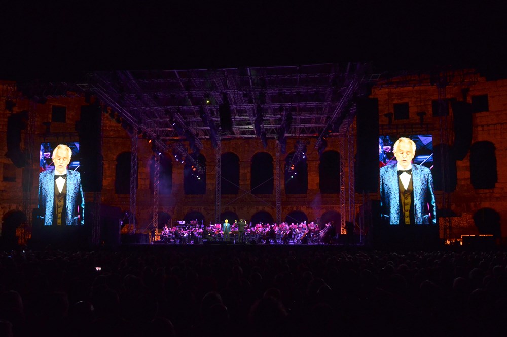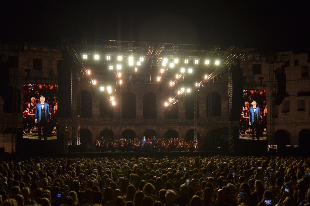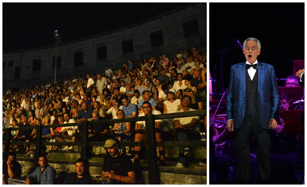 Čarobna glazbena noć u pulskoj Areni - mogao bi glasiti najkraći sažetak koncertnog doživljaja održanog u Vespazijanovom amfiteatru. Prvi od dva koncerta Andree Bocellija održan je u petak navečer, a Arena je bila, malo je reći rasprodana i " pre mala", dok je drugi koncert ovog poznatog glazbenika, koji obilježava 30. godišnjicu nevjerojatne karijere, na programu u subotu.