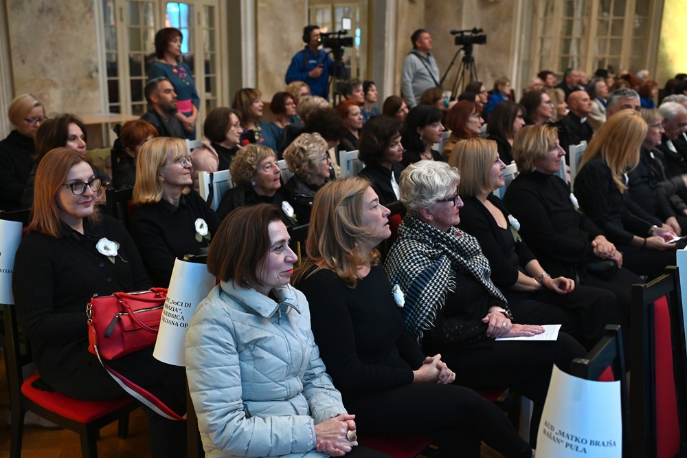 Domaćini s mladom energičnom dirigenticom Rominom Peti izveli su Brajšinu "Tuga mi je", potom "Istarski kanon" mladog pulskog skladatelja Luke Demarina i "Ki to tapa" Emila Cosetta, uvijek tehnički precizno i uigrano.