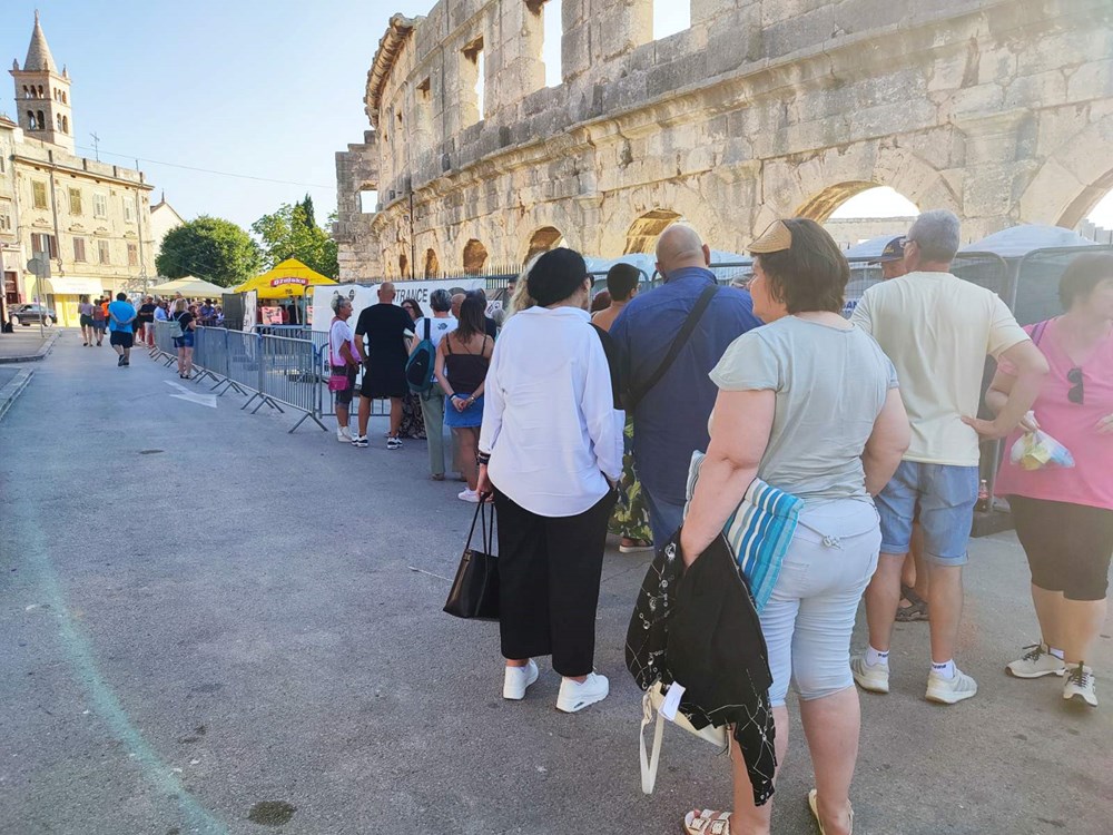 Već od popodnevnih sati oko Arene su se okupljali fanovi. Iako nije bilo kampiranja pred ulazom kao kod nekih drugih koncerata, redovi za ulazak u Arenu su bili podugački. Visoke temperature u Puli danas su zadržale mnoge u hladu do posljednjeg trenutka, no atmosfera ispred Arene iz sata u sat bila sve je življa.