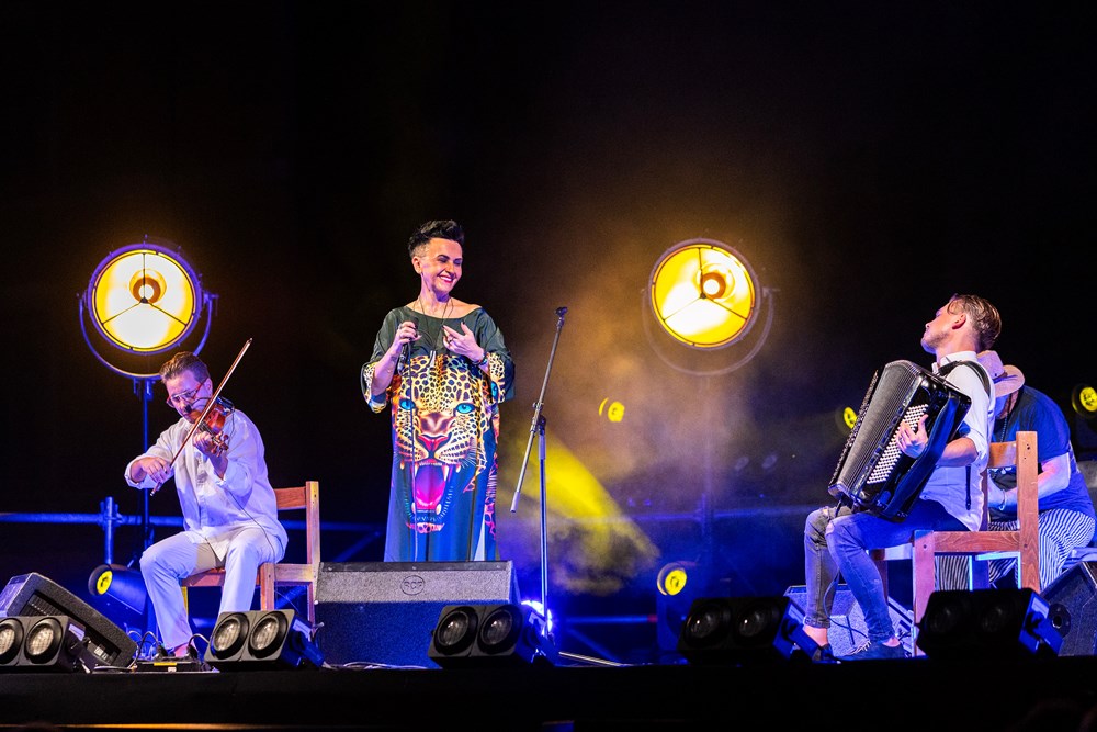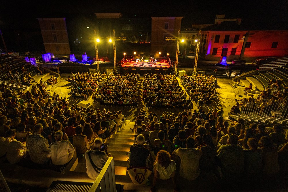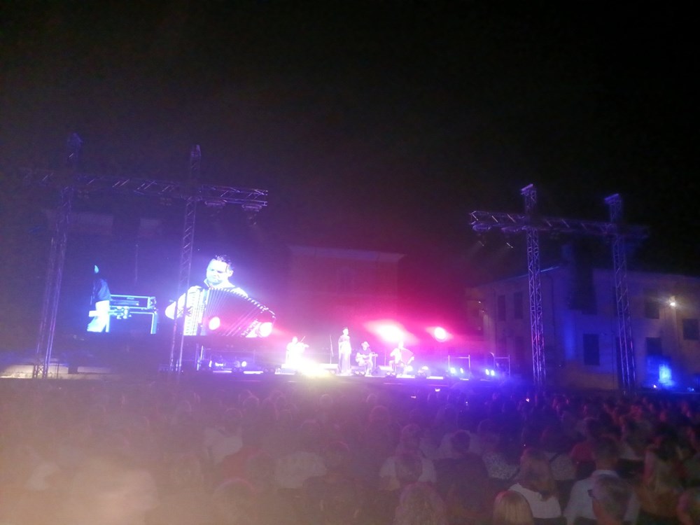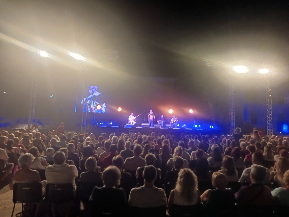 Dobro ispunjeno Malo rimsko kazalište dočekalo je koncert Amire Medunjanin, iznimne umjetnice koja svaki put iznova oduševi publiku vodeći ih zanimljivim, bogatim lirskim itinererom duše, glazbom koja je u stanju proizvesti pravi osebujan, šaroliki kaleidoskop emocija, gdje se spajaju lirsko i epsko, tradicija i moderno, uz sjajan štimung i dobro raspoloženje. Gdje hommage tradiciji i inovacije kreiraju zanimljiv glazbeni pristup s aranžmanima tradicionalnih melodija, stihova i stila vokalne izvedbe, odnosno glazbom bez granica.