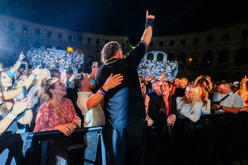 Spektakularna produkcija dodatno je upotpunila glazbenu čaroliju. Svjetlosni efekti obasjali su drevne zidine Arene i pretvorili ih u veličanstvenu kulisu koja je savršeno pratila svaki Tonyev stih.