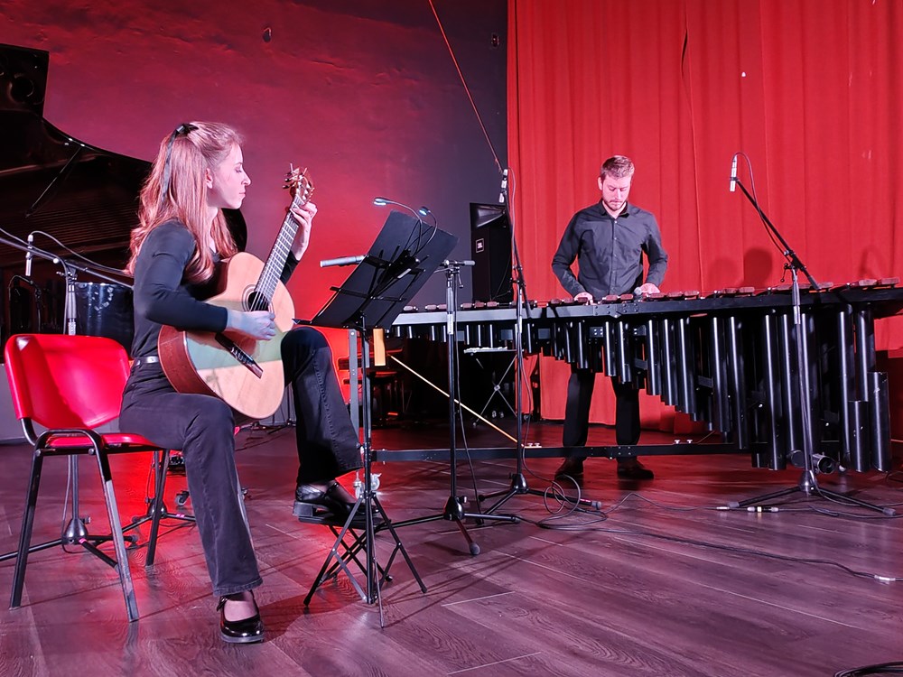 Na početku koncerta publici se obratila ravnateljica Melita Lasek Satterwhite, izrazivši sreću i ponos zbog trinaestog koncertnog izdanja te zahvalivši učiteljima koji, uz obiman i zahtjevan pedagoški rad, kontinuirano njeguju vlastitu izvođačku djelatnost i s velikom predanošću pripremaju ovakve vrhunske koncertne programe. Program je suptilno i profinjeno vodila Sara Circota, čije su najave diskretno povezivale stilski raznolike točke u zaokruženu umjetničku cjelinu. Uslijedila je plesna minijatura »San ljetne noći« u izvedbi Marjam Ristić i Vitalija Kloka, uz klavirsku pratnju Andree Furlana, gdje su se pokret i glazba skladno prožimali u poetskom ozračju. Romantička ekspresivnost Gabriela Bruna u »Romanci za flautu i klavir, op. 41« zazvučala je u profinjenom dijalogu flaute i klavira. Ivana Mišić oblikovala je na flauti fraze mekim, pjevnim tonom, dok je Melita Lasek Satterwhite bila muzikalno i harmonijski bogata, kao stabilan temelj melodijskoj liniji. Barokna jasnoća i ritmička artikuliranost došle su do izražaja u Bachovu Preludiju iz Engleske suite br. 2, izvedenom u zanimljivoj kombinaciji marimbe i gitare u izvedbi Vita Muževića i Anise Parganlija. Transkripcijska prilagodba donijela je novu zvukovnu perspektivu, a izvođači su uspjeli zadržati polifonu preglednost i plesni karakter izvornika. Impresionističku eleganciju Debussyjeve »Petite Suite – En bateau« četveroručno su oblikovale Monika Štangl i Nicole Vidak, dok su Romina Peti i Nicole Dmitrović u Hurwitzovu »Epilogueu« iz filma La La Land dočarale lirsku filmsku atmosferu ispunjenu nostalgijom i suptilnom dinamičkom gradacijom.