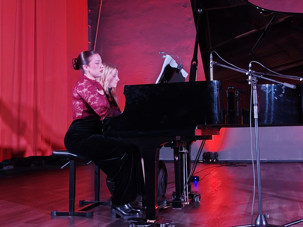Posebno oduševljenje izazvao je nastup Vokalnog kvarteta Misty kojeg čine izvrsni vokali: Jenny Brković (sopran), Jadranka Celić Bernaz (alt), Marko Fortunato (tenor) i Haris Brković (bariton). Njihova interpretacija jazz standarda – od McHughova »I Can’t Give You Anything But Love« do Ellingtonove elegancije i razigrane Kaempfertove »L.O.V.E.« – bila je stilski uvjerljiva, prožeta scenskim šarmom. Aranžmani Denisa Lorkovića omogućili su svakom glasu individualni sjaj unutar skladne višeglasne cjeline, dok su klavir i kontrabas, u izvedbi Alda Foška i Damjana Grpca, pružili skladnu ritamsko-harmonijsku potporu u duhu klasičnog jazza. U nastavku koncerta Monika Štangl izvela je Chopinovu Etidu op. 10 br. 5 (»Black Keys«), demonstrirajući tehničku preciznost i muzikalnu jasnoću. Hrvoje Puškarić izveo je vlastitu skladbu »Zatvorenikov san«, unoseći introspektivnu notu, s naglašenim kontrastima i snažnom ekspresivnom gestom. Beethovenove varijacije na Mozartovu temu »Ein Mädchen oder Weibchen« pokazale su skladnu sinergiju gitare i klavira, s jasno profiliranim varijacijskim karakterima i stilskom dosljednošću. Wiedoeftov »Valse Vanité« donio je dašak salonske virtuoznosti i razigrane elegancije saksofona, u izvedbi Marina Komadine na saksofonu i Nicole Vidak na klaviru.