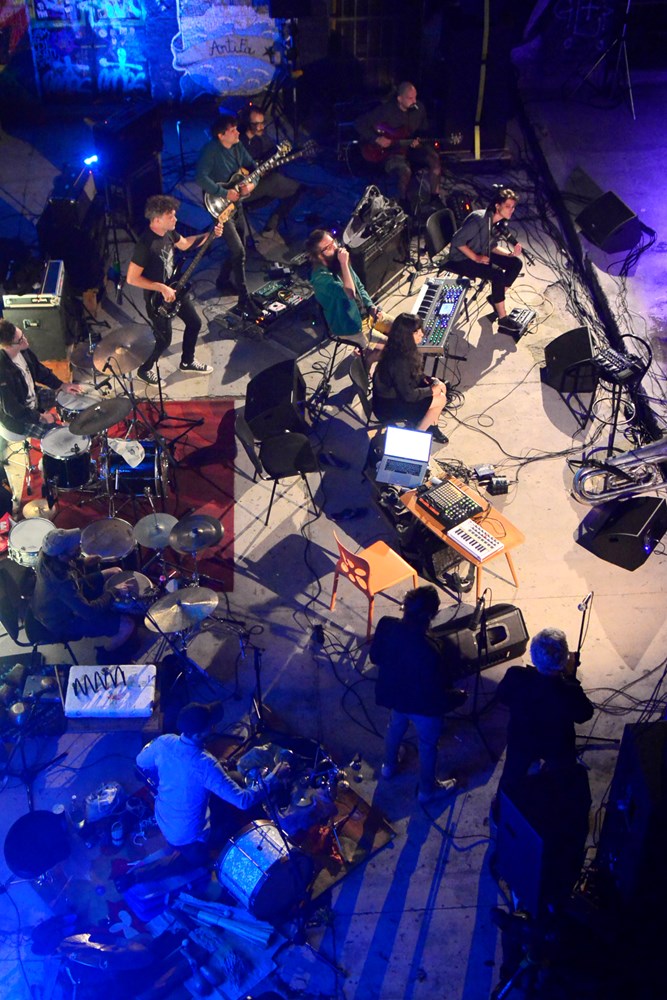 Impro big band CRI Orchestra pod vodstvom dirigenta i skladatelja Nevena Radakovića izveo je u dvorištu Rojca koncert u kojem je teško bilo predvidjeti što slijedi. Ali, kako je i najavljeno, bio je to nastup u znaku glazbe, geste, akcije i reakcije, kolektivne improvizacije i komunikacije