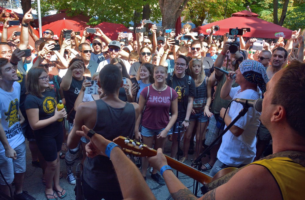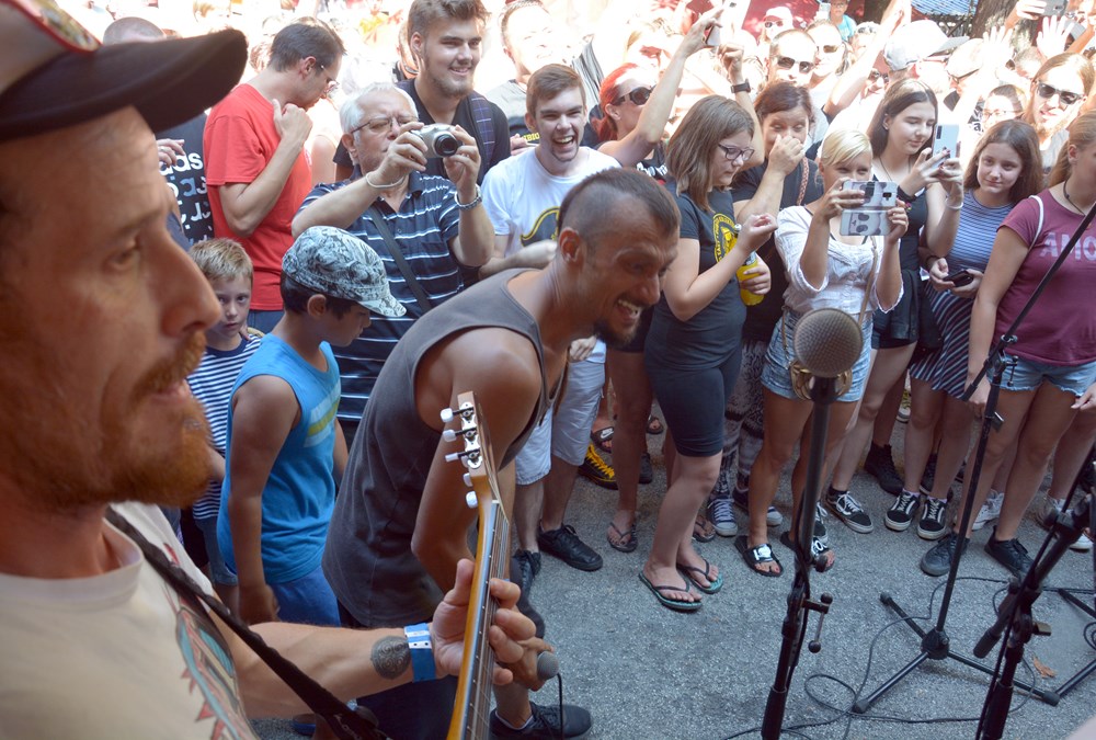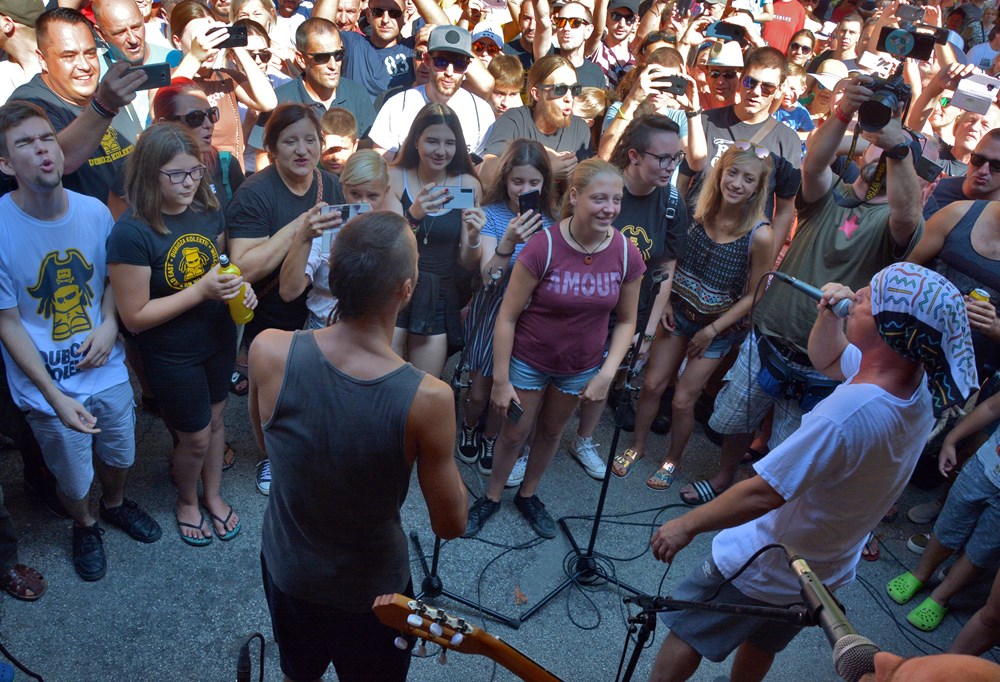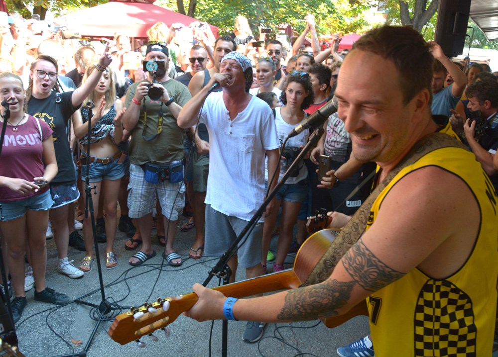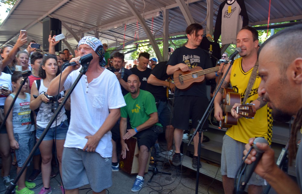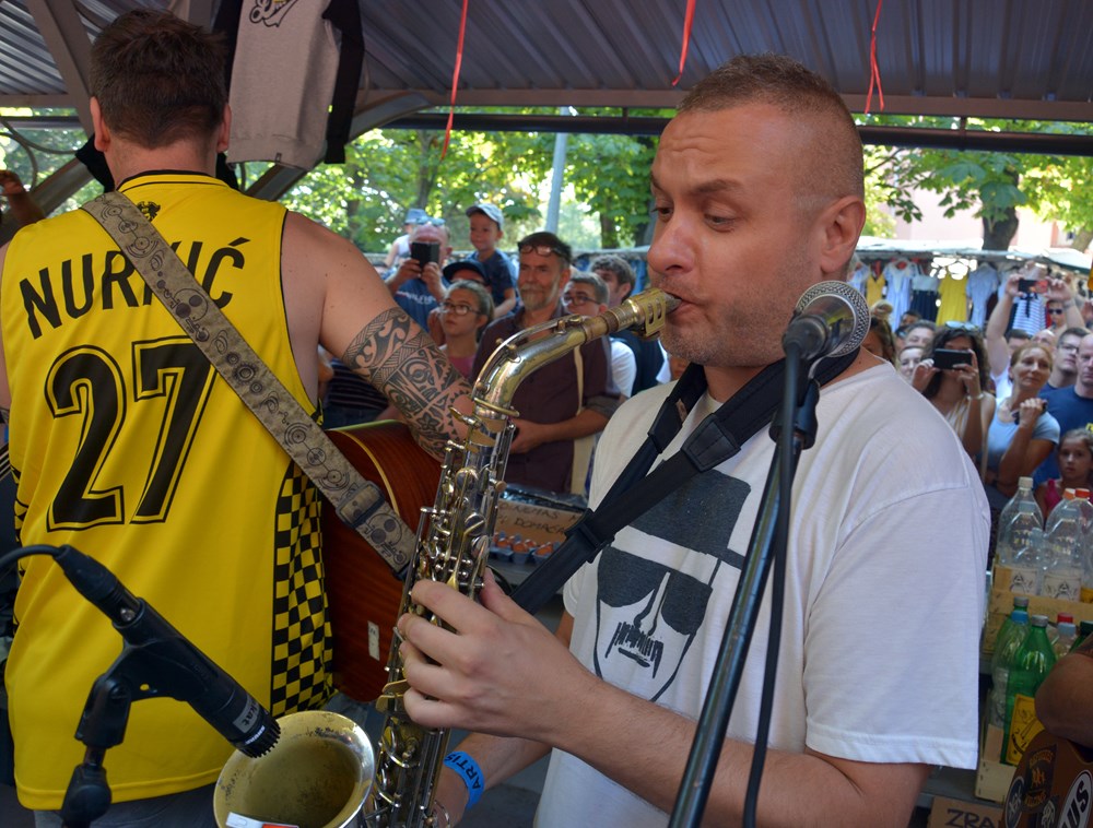 Dubioza Kolektiv održala je jutros u 10 sati promotivan nastup na glavnoj pulskoj tržnici kao uvertiru u večerašnji koncert u Areni. Takozvana prva i jedina "pijačna matineja" okupila je oko jednog štanda u pozadini gradske tržnice velik broj fanova koji su se natiskali oko svojih idola jedva im ostavljajući mjesta za svirku.