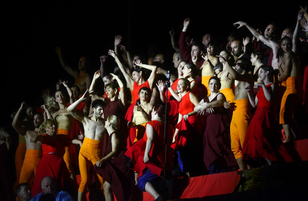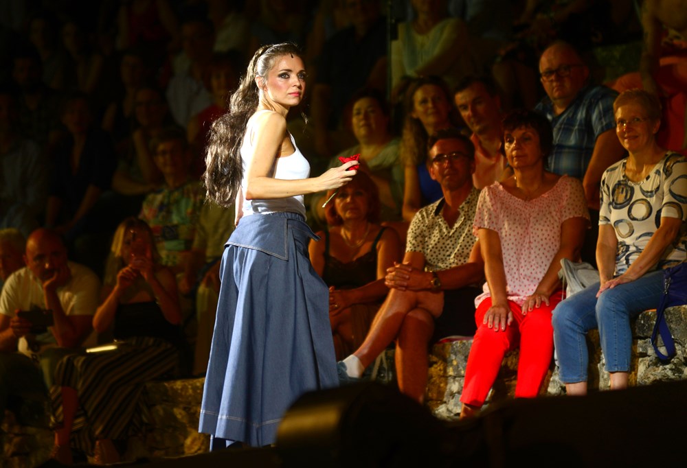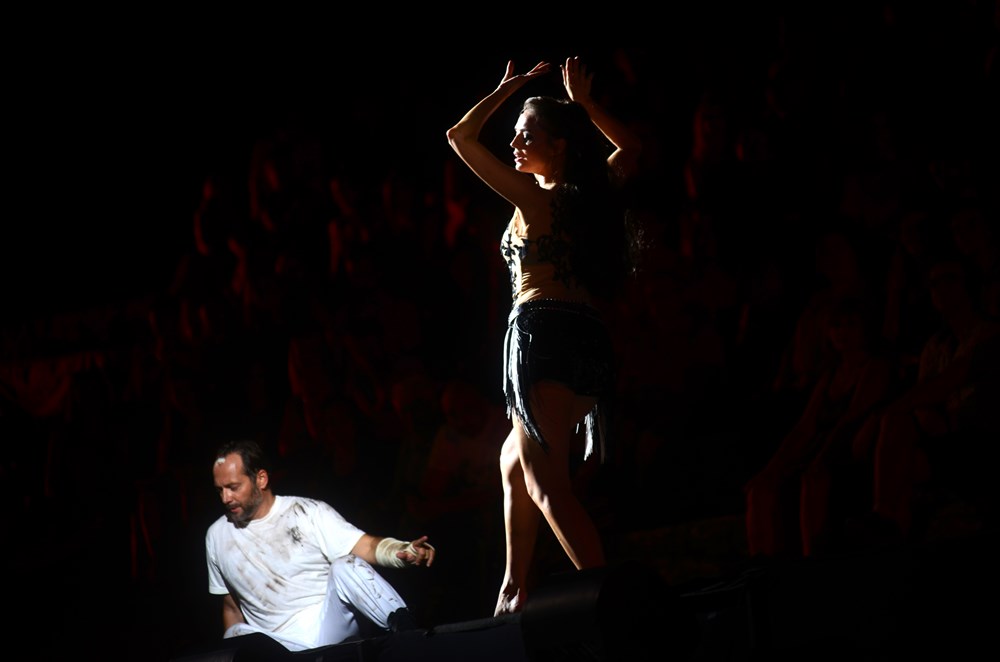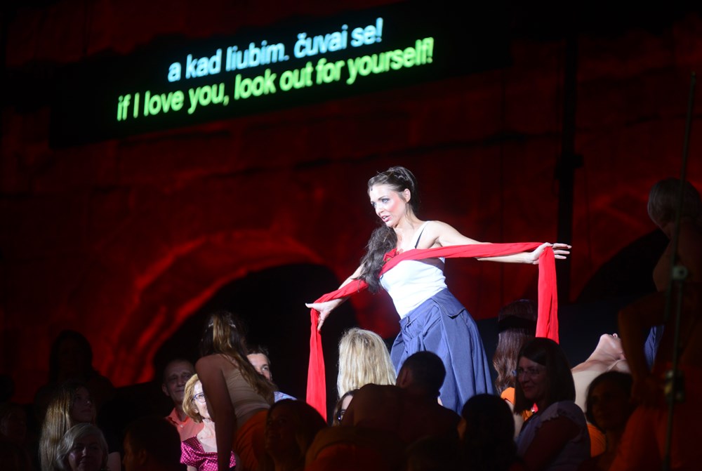 Cijela je Arena postala pozornica, tribine su pretvorene u poprište ove priče o strasti, ljubavi, inatu, prkosu i bijesu u uprizorenju realiziranom samo za pulski antički amfiteatar, u znaku promjene perspektive.