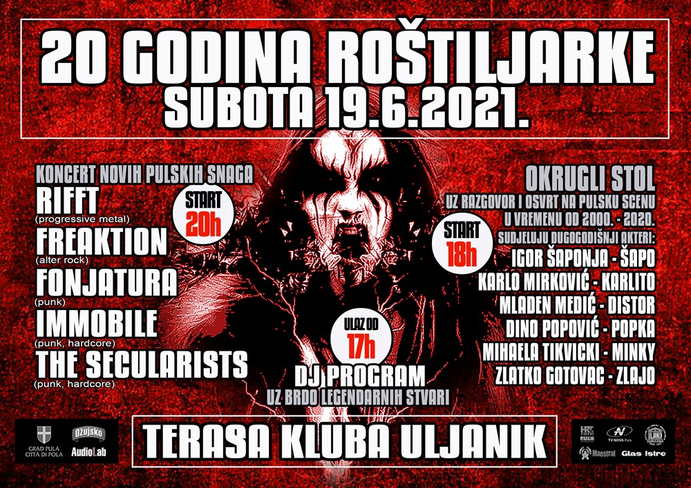 U subotu, 19. lipnja, u Klubu Uljanik održat će se jubilarna Roštiljarka, kojom se obilježava impresivnih dva desetljeća ove radijske emisije koja je s godinama prerasla u koncertni program kao i udrugu koja promovira pretežno metal ali i druge žanrove alternativne glazbe.