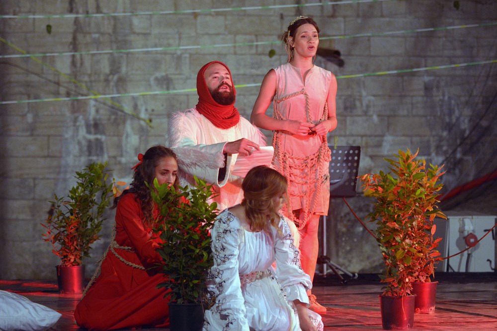 Djelo je upriličeno u izvedbi pjevača i glumaca Opere Pannonice, ansambla i zbora Akademije za umjetnost i kulturu u Osijeku u režiji Puljanina Roberta Raponje