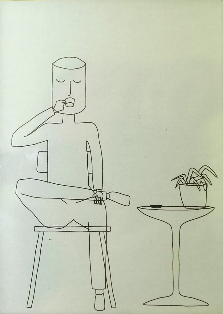 Večer je počela izložbom vukovarske umjetnice sa zagrebačkom adresom Sande Voloder "Pepé smokes cigarettes" u Karlobaru, no prebacit će se u Dnevni boravak. Ovo je njena druga samostalna izložba, četvrta ukupno, a nastala je iz jedne igre, eksperimentiranja, jer kako umjetnica jako voli geometriju krenula je crtati valjak, pa spajati nekakve linije i onda joj se javio motiv nogu pa je spojila valjak geometrijski lik, koji je dobio noge i ruke i postao Pepé, oživio je kroz igru linija, kako nam je objasnila umjetnica.