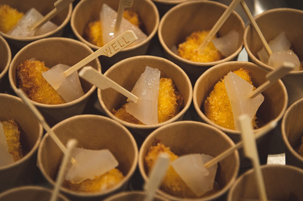 Blanc de Blancs Brut poslužen je uz pohani mladi kozji sir u panko mrvicama, s uljem od lješnjaka i gelom od gin-tonika, dok su uz Premier Cru Grande Réserve Brut gosti uživali u domaćem tostu s tostiranim bademima, mascarpone kremom, hrskavcem od špeka i koricom limuna. Cuvée Prestige Millésime Brut 2011 pratila je kombinacija domaćeg tosta, umaka od naranče i gorušice, slanine od crne slavonske svinje i telećih kotleta koja je pokazala svu profinjenost, eleganciju i dubinu De Vilmont šampanjaca.