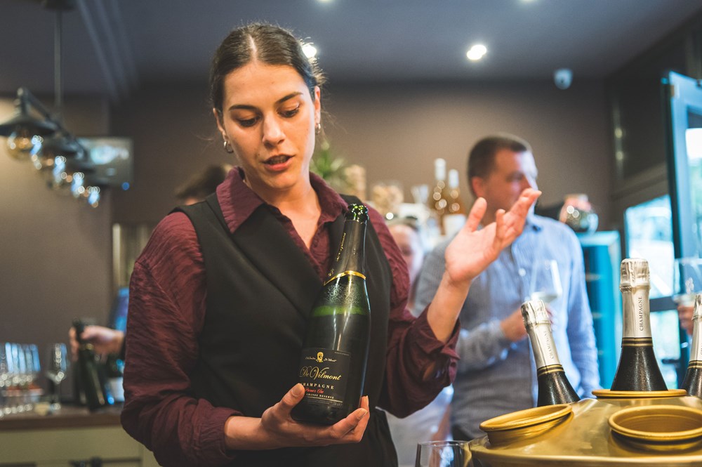 Goste je kroz degustaciju vodila Jana Košćec, sommelierka Brola, dok je za sljubljivanje bio zadužen Mario Meštrović, vlasnik restorana Kaiser i sommelier s bogatim međunarodnim iskustvom te nositelj prestižne A.S.I. Gold diplome. Uz pažljivo osmišljeno sljubljivanje hrane i šampanjaca, predstavljene su tri izvanredne etikete De Vilmonta: