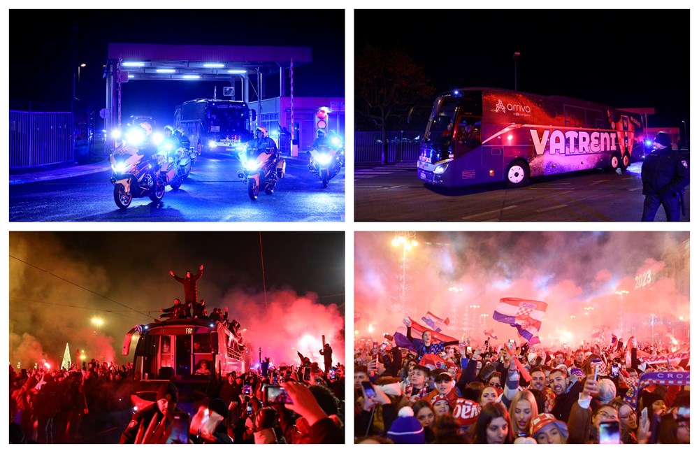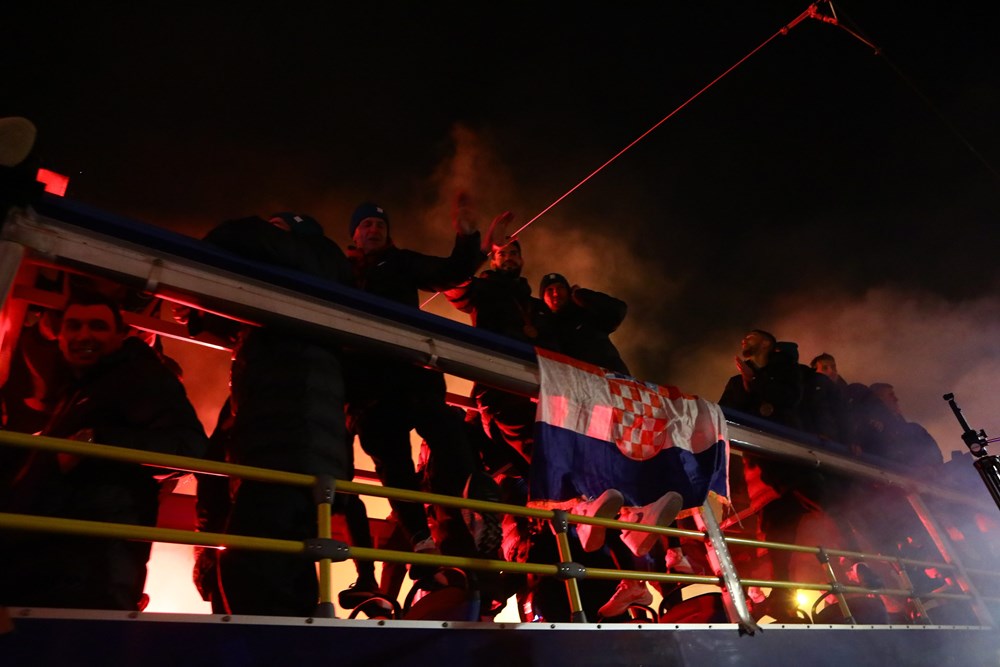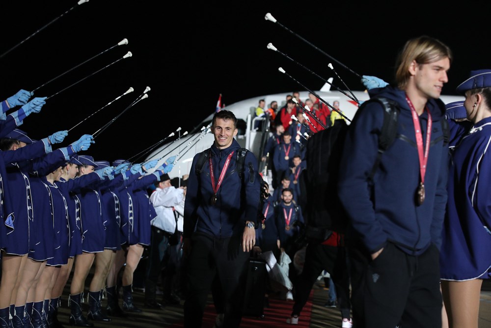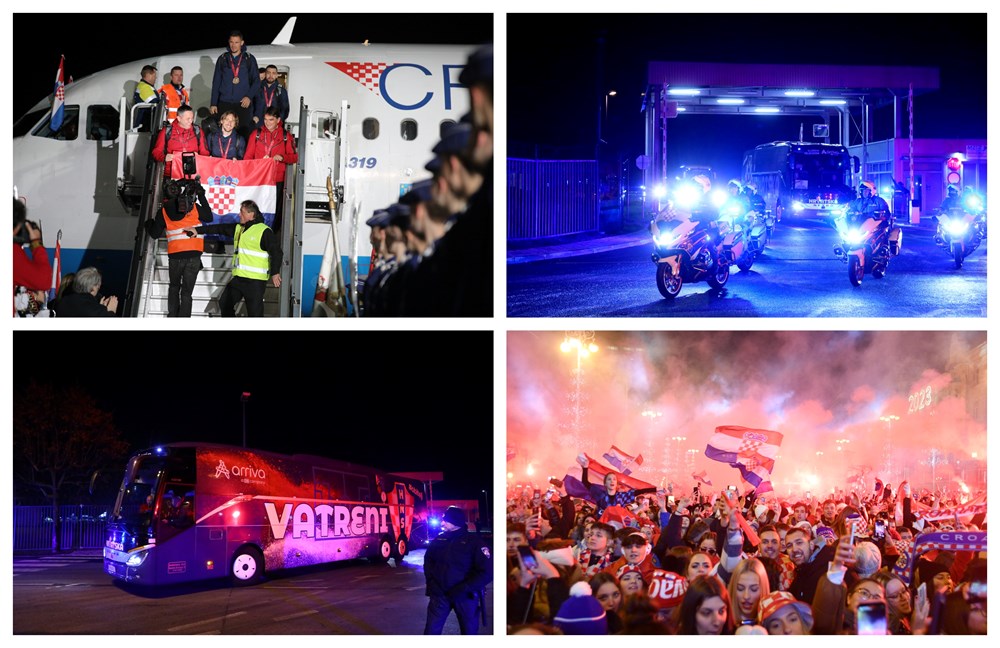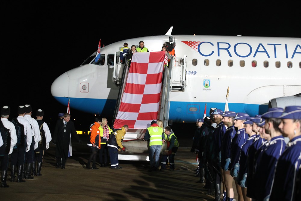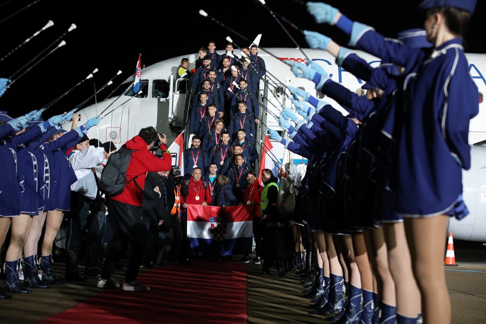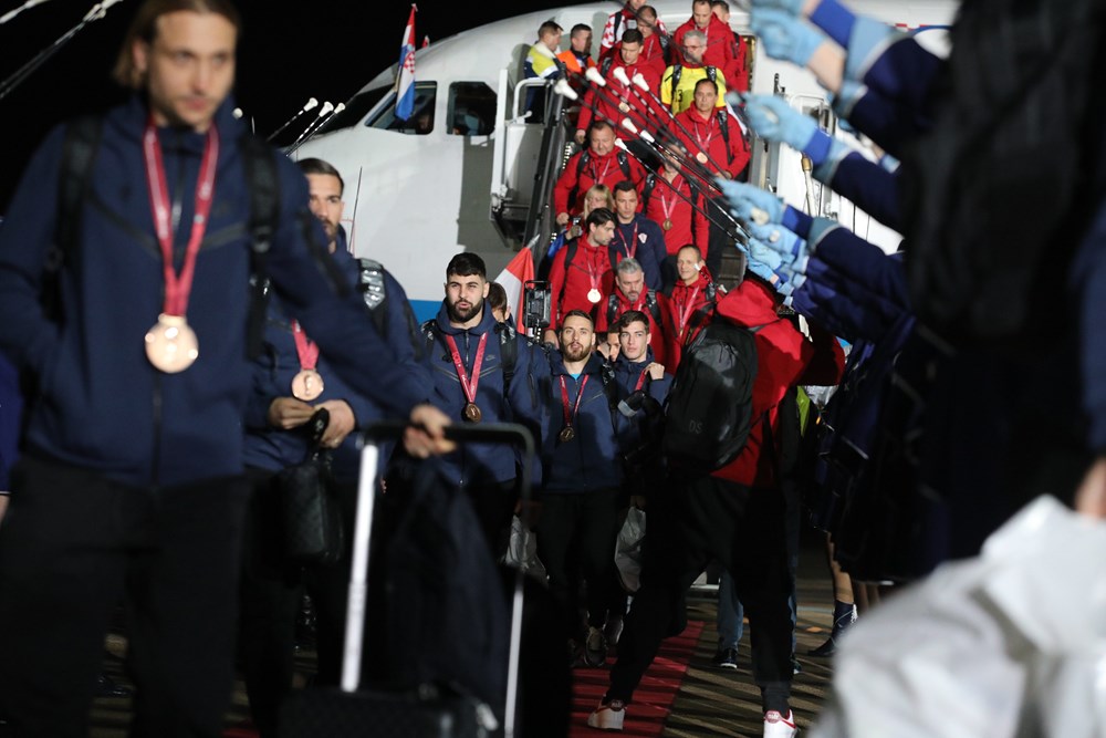 Zrakoplov je sletio u 17,26 sati u zračnu luku Franjo Tuđman, gdje osvajače trećeg mjesta na Svjetskom prvenstvu u Kataru dočekuju navijači oduševljeni novim nogometnim uspjehom, nakon osvojene bronce 1998. u Francuskoj i srebra 2008. u Rusiji.