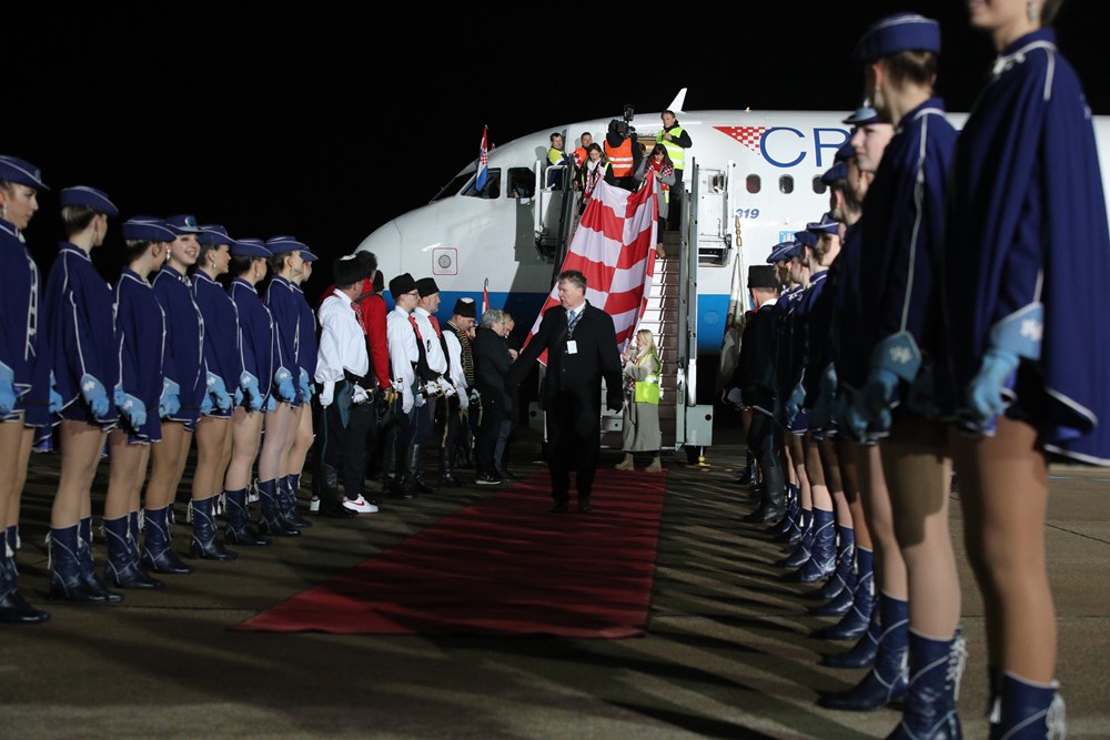 Na pisti ih dočekuju Zagrebačke mažoretkinje i Turopoljski banderij, svečana povijesna postrojba Hrvatske vojske, a na izlazu ih čekaju građani.