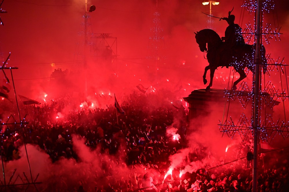 Trg gori u iščekivanju nogometaša koji se polako približavaju centru grada.
