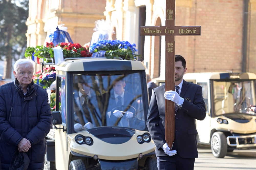 Miroslav Ćiro Blažević upravo je pokopan u Aleji velikana na Mirogoju. Lijes je spušten u grobnicu dok je trajala poznata francuska šansona La Mer, prenosi Index. Okupljeni su se posljednji put opraštali od Ćire bacanjem ruža na njegov lijes.