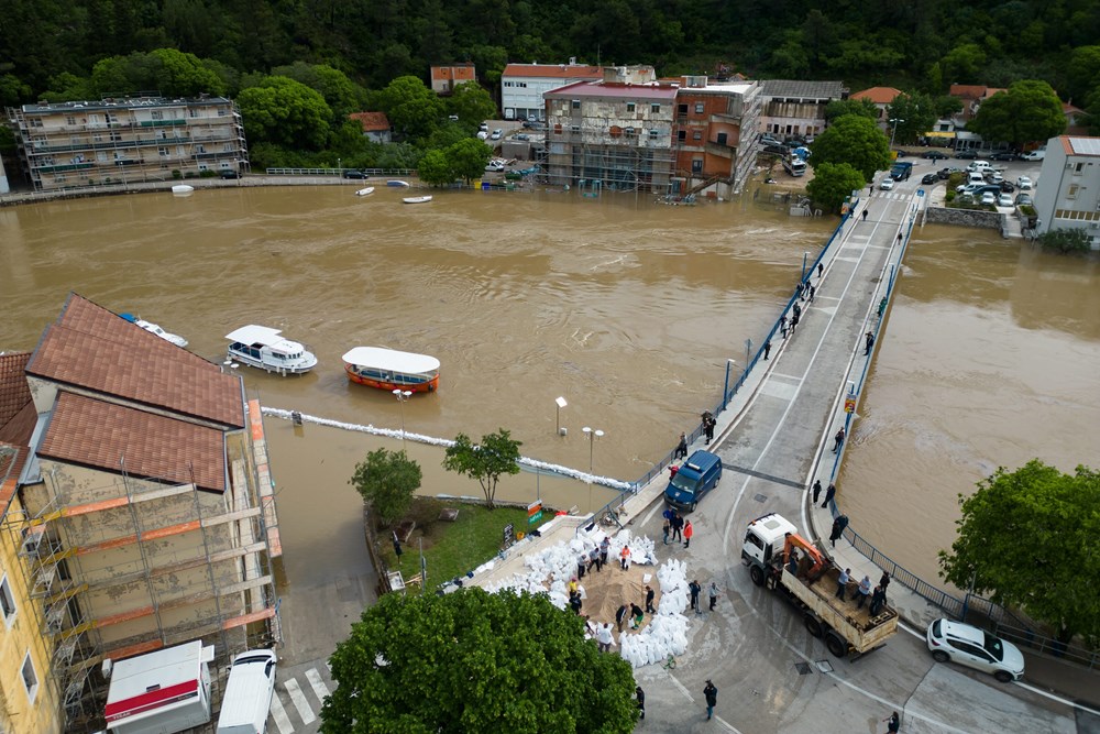 Nakon što je u samo 24 sata palo 250 litara po četvornome metru, vodostaj rijeke Zrmanje u Obrovcu je jučer ujutro dosegnuo povijesna 302 centimetra, što je čak 39 cm iznad dosad najvišeg vodostaja Zrmanje izmjerenog u tom gradu. Voda se izlila na ulice, probila se i u povijesnu jezgru. Situacija je teška i u Gračacu. Danas je najkritičnije u Hrvatskoj Kostajnici, gdje je proglašeno izvanredno stanje, a Una raste iz sata u sat.