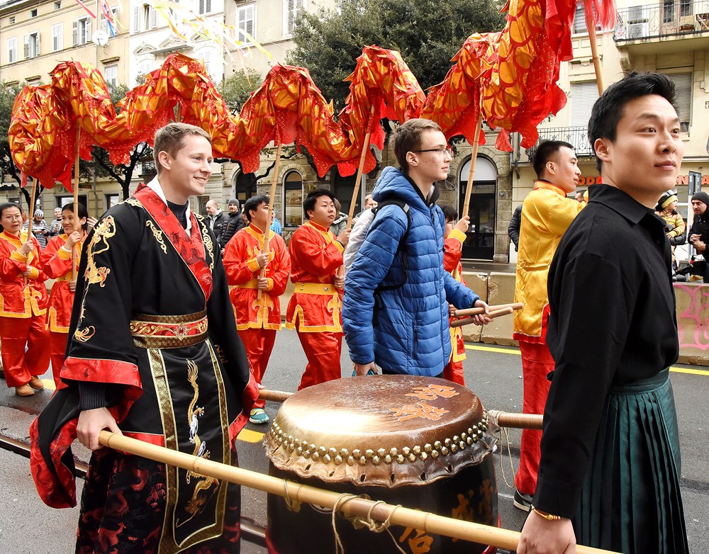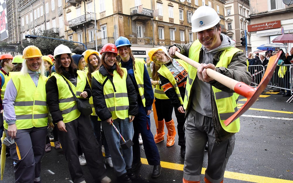 Na čelu povorke su i "gradonačelnik u sjeni" Marko Filipović i direktor Turističke zajednice grada Rijeke Petar Škarpa, a slijede Limena glazba Trsat i riječke mažoretkinje.