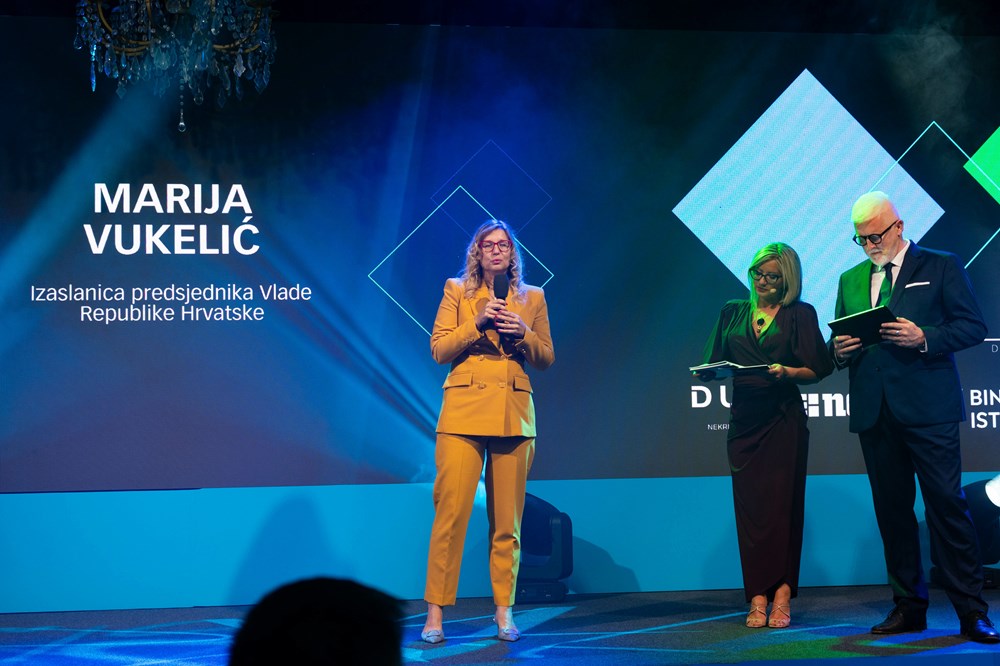 - Ova nagrada nije samo priznanje uspjeha, već je treba shvatiti i kao poticaj da svi zajedno nastavimo graditi Hrvatsku kao zemlju znanja, poduzetništva i održivog razvoja. Drago mi je da je tematska okosnica ovogodišnje nagrade digitalna transformacija i primjena UI-ja. Te teme nisu samo aktualne nego će biti ključne za rast i poslovanje. Vlada prepoznaje važnost ulaganja u nove tehnologije i inovacije, snažno podržava poduzetništvo, ali i kontinuirano unaprjeđuje poslovno okruženje kako bi se stvorilo digitalno zrelo društvo otporno na izazove suvremenog doba. Čestitamo dobitnicima, koji neka svoju nagradu shvate kao poticaj za nove uspjehe, a nama drugima neka to bude motivacija i inspiracija da vjerujemo u potencijal hrvatskog gospodarstva, istaknula je Vukelić.