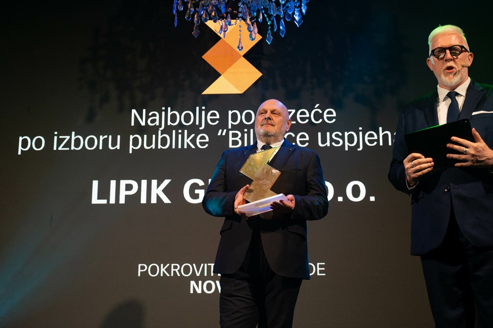 - Ovo smo što jesmo zahvaljujući vama. I dalje ćemo davati najbolje od sebe da vam ponudimo najbolju moguću uslugu. Svake godine četvrtinu prihoda uložimo u razvoj digitalne infrastrukture, ne samo za izgradnju mobilnih mreža nego i za spajanje naših kućanstava na optičku mrežu. Radimo to jer znamo da je digitalizacija preduvjet razvoja ovog društva i ove lijepe zemlje. Drago nam je i da je umjetna inteligencija bila sastavni dio ovog izbora jer je Hrvatski Telekom godinama donosio tehnologiju u naša kućanstva i tvrtke. I UI ćemo, nadam se, jednako tako uspješno dovesti do svih naših korisnika, poručila je Rapaić. Najbolje poduzeće u Hrvatskoj po izboru publike je Lipik Glas d.o.o., pri čemu su dakle sami poduzetnici birali najboljeg među njima. Pokrovitelj ove nagrade je Novi list, ekskluzivni medijski pokrovitelj manifestacije, a u ime Novog lista nagradu je uručio član Uprave Novog lista d.d. Renato Ivanuš. Nagradu je primio Dorian Knapić, generalni direktor i predsjednik Uprave Lipik Glasa, koji se zahvalio te nagradu posvetio zaposlenicima.