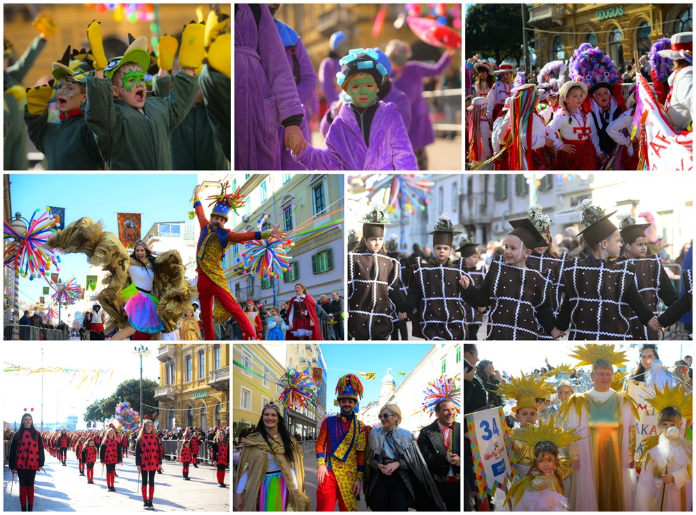 Sunčano subotnje vrijeme sjajna je kulisa današnje dječje karnevalske povorke Riječkog karnevala. Preko šest i pol tisuća mališana svojim malim, snažim koracima kreće u maškaranu šetnjom gradom.