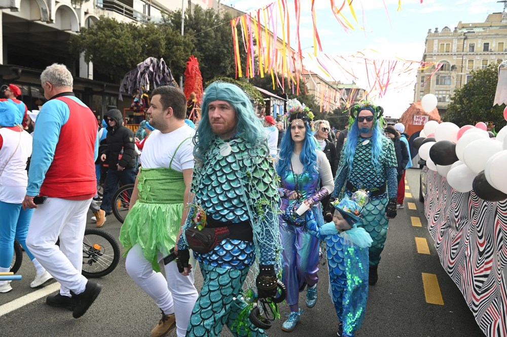 Velika karnevalska povorka dokazala je da maškarani svijet tjera zimu, a bome, srećom, i kišu koje je nakon jučerašnjeg kišnim kapima ispunjenog dana, maškarani svijet danas dočekalo sunce. Maškare su već ranije ispunile riječku rivu gdje se grupe okupljaju i odakle kreću na maškarani "đir" gradom. Međunarodna karnevalska povorka startala je, dakle, u podne.