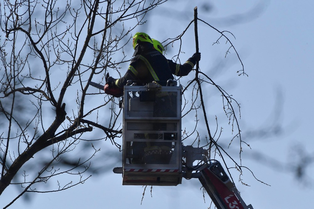 Oko 10 sati, krenula je akcija piljenja grana na stablima visokima i preko 15 metara, a cijelo vrijeme je na mjestu događaja prisutna i dežurna ekipa Hitne pomoći.