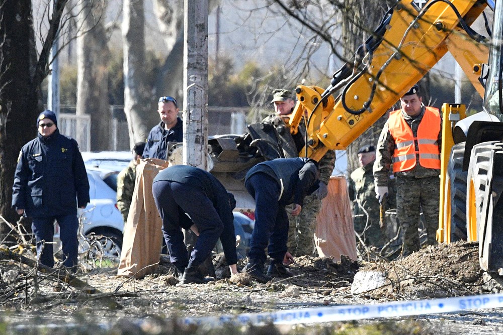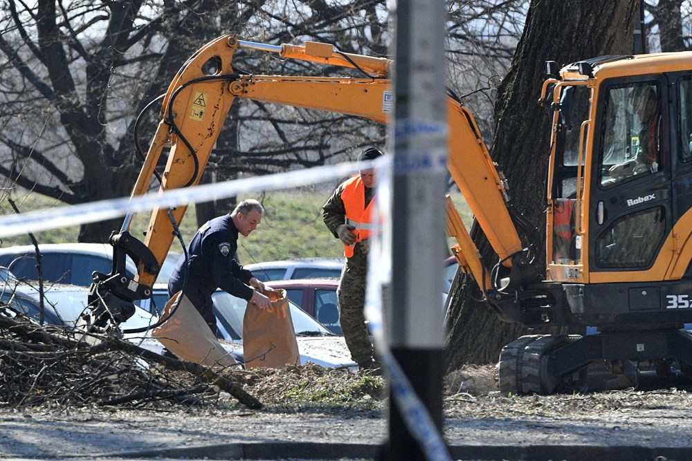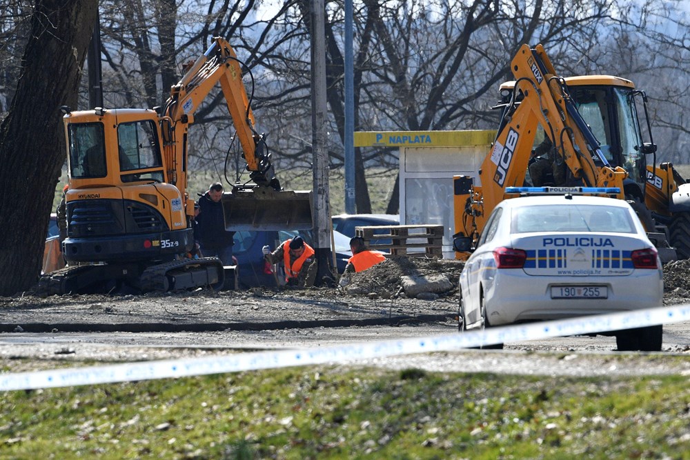 Nešto prije 11 sati, bager je počeo raskopavati zemlju oko samog kratera, a djelatnici policije uz pomoć vatrogasaca temeljito pregledavaju izvađene grumene zemlje te izuzimaju komadiće letjelice i spremaju ih u vreće.