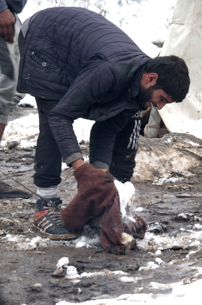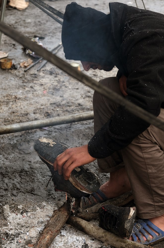 Migranti su promrzli, pothlađeni, izranjavani. Mnogi od njih nemaju ni cipele, kamoli čizme ili kakvu adekvatnu odjeću za zimske uvijete. Po bljuzgi gackaju u ljetnim sandalama. Gola stopala povremeno griju na logorskim vatrama, među hrpom smeća. Omataju se u deke, ručnike. Navlače kapuljače preko glave.