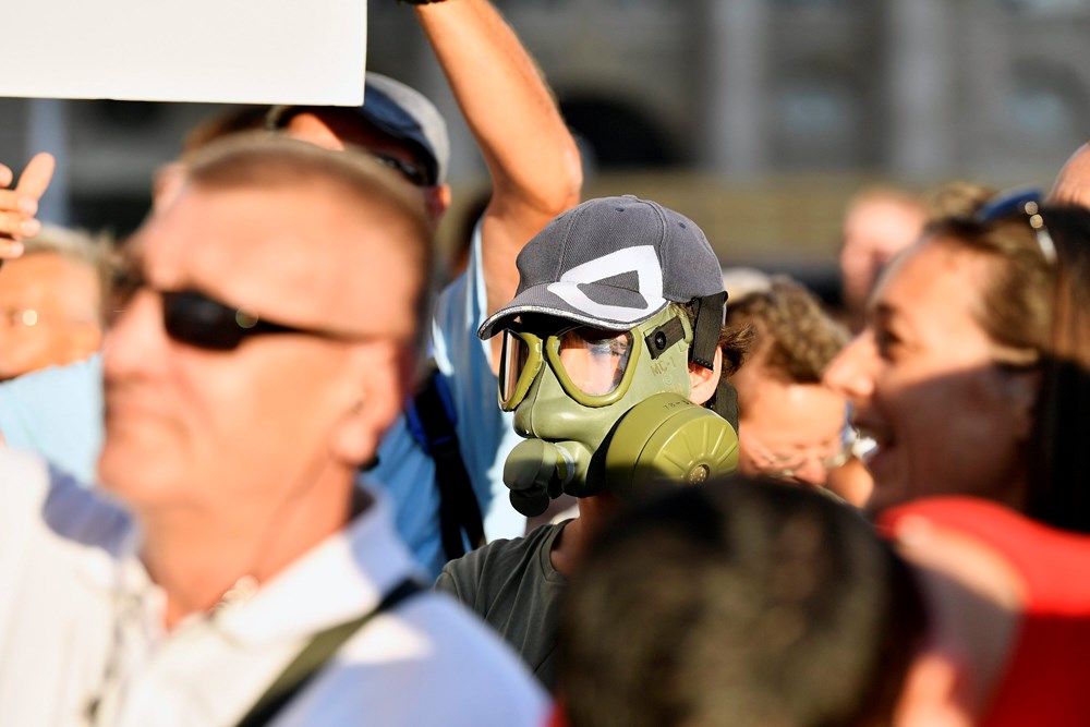 Uz turistički autobus i glazbu, okupljeni su razvili transparente s porukama poput "Skini masku, ugasi TV, živi punim plućima", "Covid je laž, nismo svi covidioti", "Roditelji i djeca su nerazdvojni", "Bolje grob nego rob", "Slobodan život je naša moć", "Normalno i točka" te "Vjerujemo snazi koju imamo". Nitko osim novinara nije imao maske, piše Index.hr.