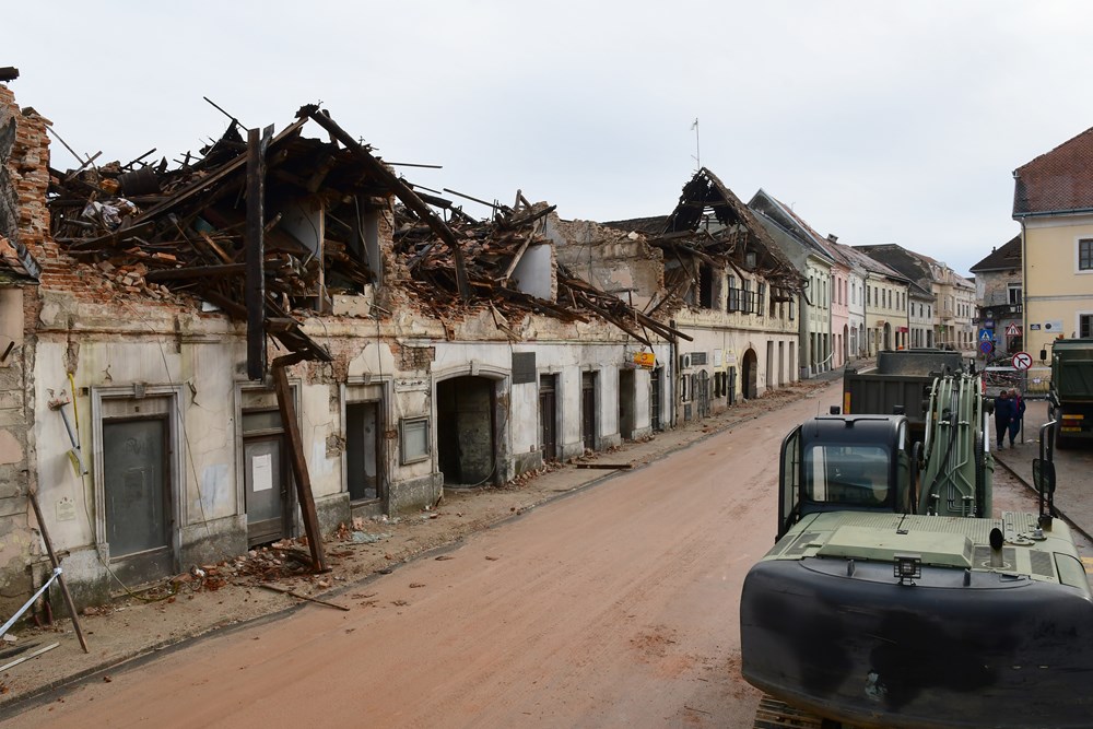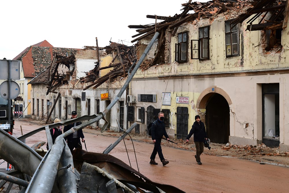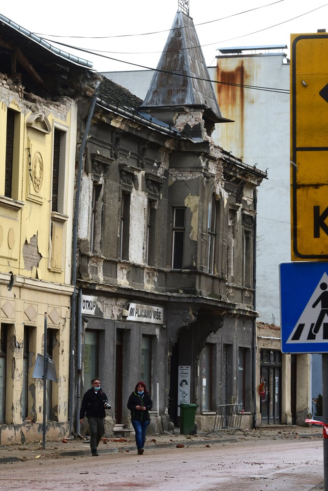 Petrinja dan nakon razarajućeg potresa izgleda – živo! Ulicom prolazi hrvatska vojska, kamioni, bageri, HGSS-ovci, dižu se dronovi i rade zračne snimke, oslobađaju prometnice, građani, oni koji su ostali, u tišini pomažu jedni drugima. Svaka kuća u centru Petrinje izgrađena prije stotinjak godina nepovratno je uništena. Trg Franje Tuđmana, kao gradska žila kucavica i mjesto gdje se odvijao društveni život, uglavnom je razoren. Ostale su tek fasade, ponegdje drvene grede, te gelerima i zubom vremena nagrižena pročelja. Unutrašnjosti objekata više nema, sve se urušilo unutra i iznutra. Potpuna implozija.
