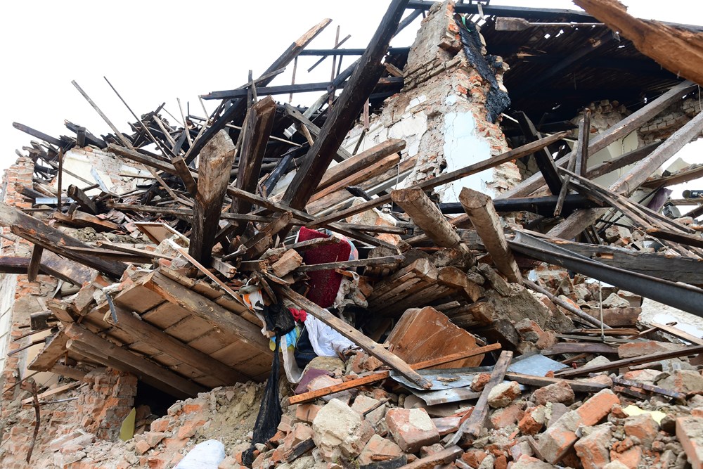U centru kuće uništene